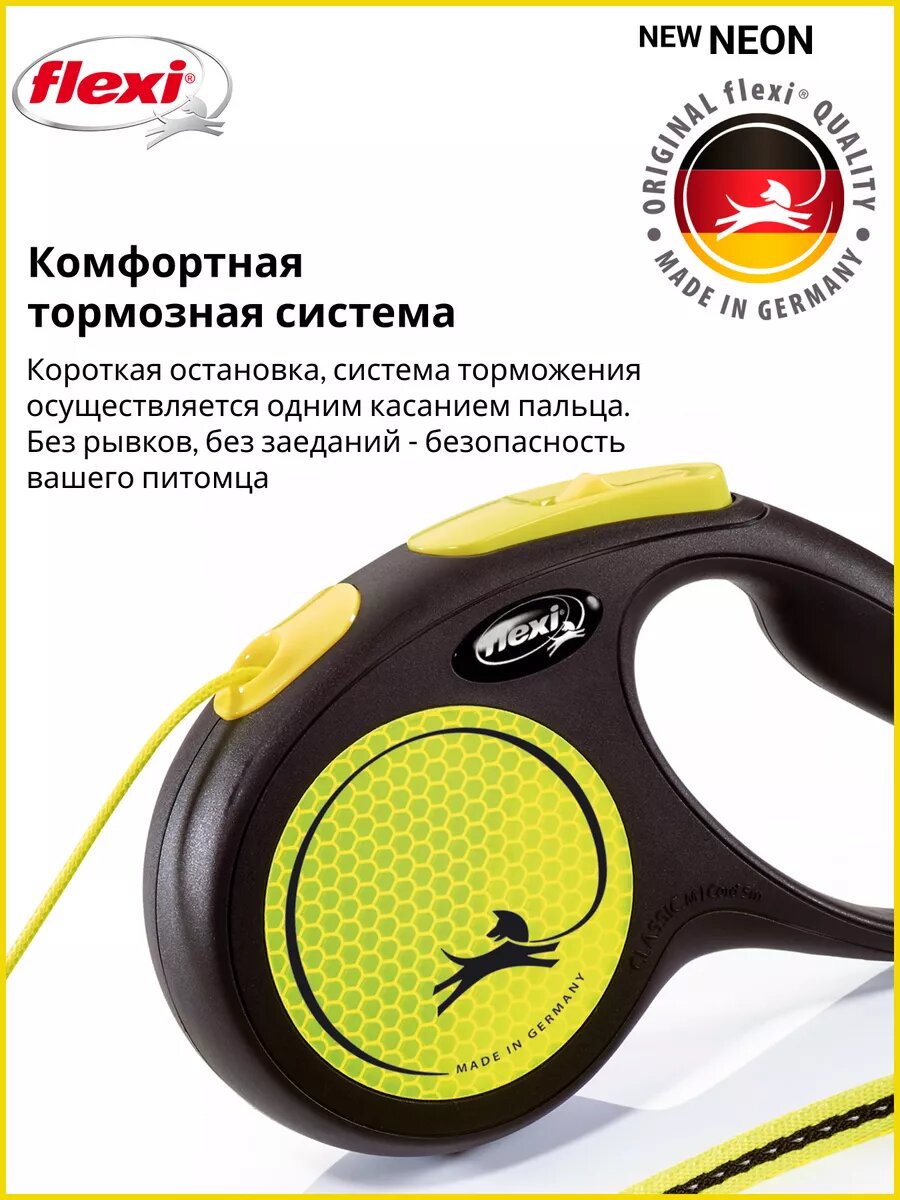 Купить flexi Рулетка-трос светоотражающая для собак до 20кг, 5м, желтая (New Neon M Cord 5m yellow) CL21C5.251.S NEOGE, 0,2283 кг