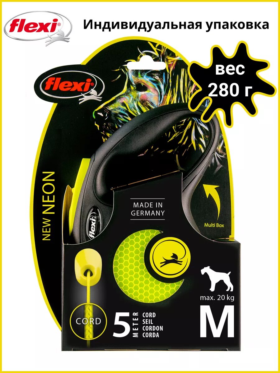 flexi рулетка Neon Classic М (до 20 кг) трос 5 м .