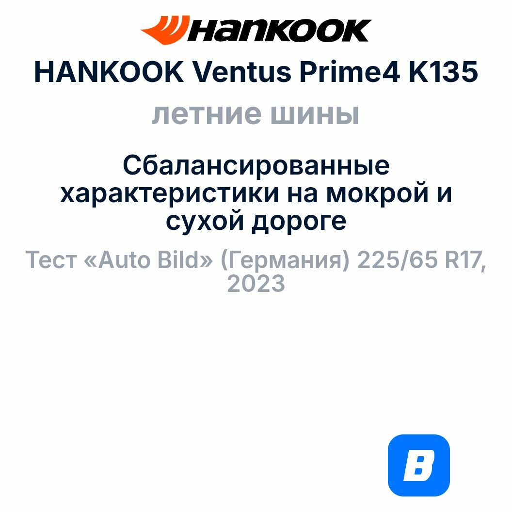 Ниже Вы можете прочитать отзывы на Автошина Hankook Ventus Prime 4 K135 225/50R17 94W, ознакомится с подробными характеристиками, посмотреть интересные обзоры и фотографии на Автошина Hankook Ventus Prime 4 K135 225/50R17 94W.