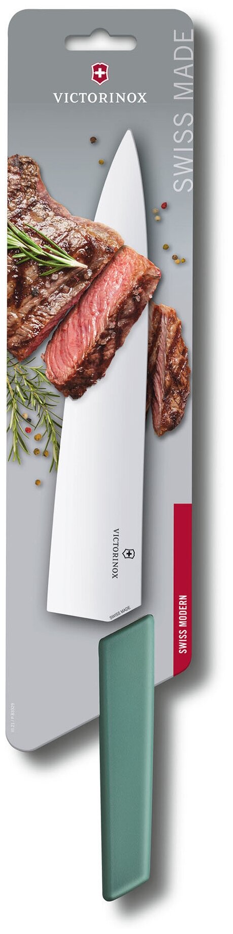 Купить Нож разделочный VICTORINOX Swiss Modern, прямое лезвие из нержавеющей стали 25 см, рукоять из синтетического материала шалфейного цвета