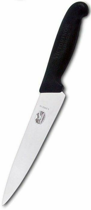 Нож кухонный Victorinox Fibrox, разделочный, 150мм, заточка прямая, стальной, черный [5.2003.15]