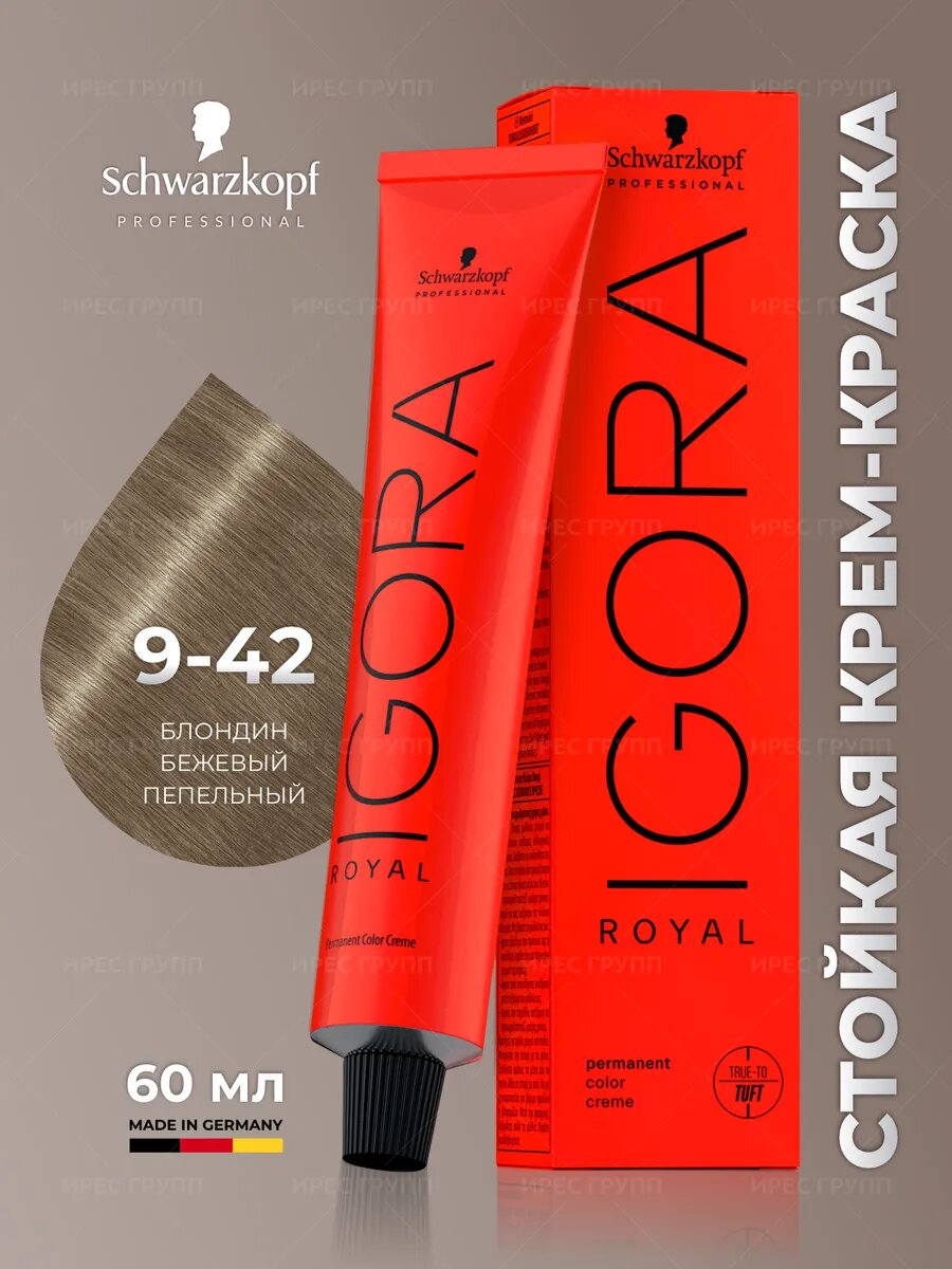 Купить Schwarzkopf Igora Royal - 9-42 Блондин бежевый пепельный Стойкая крем-краска для волос 60 мл