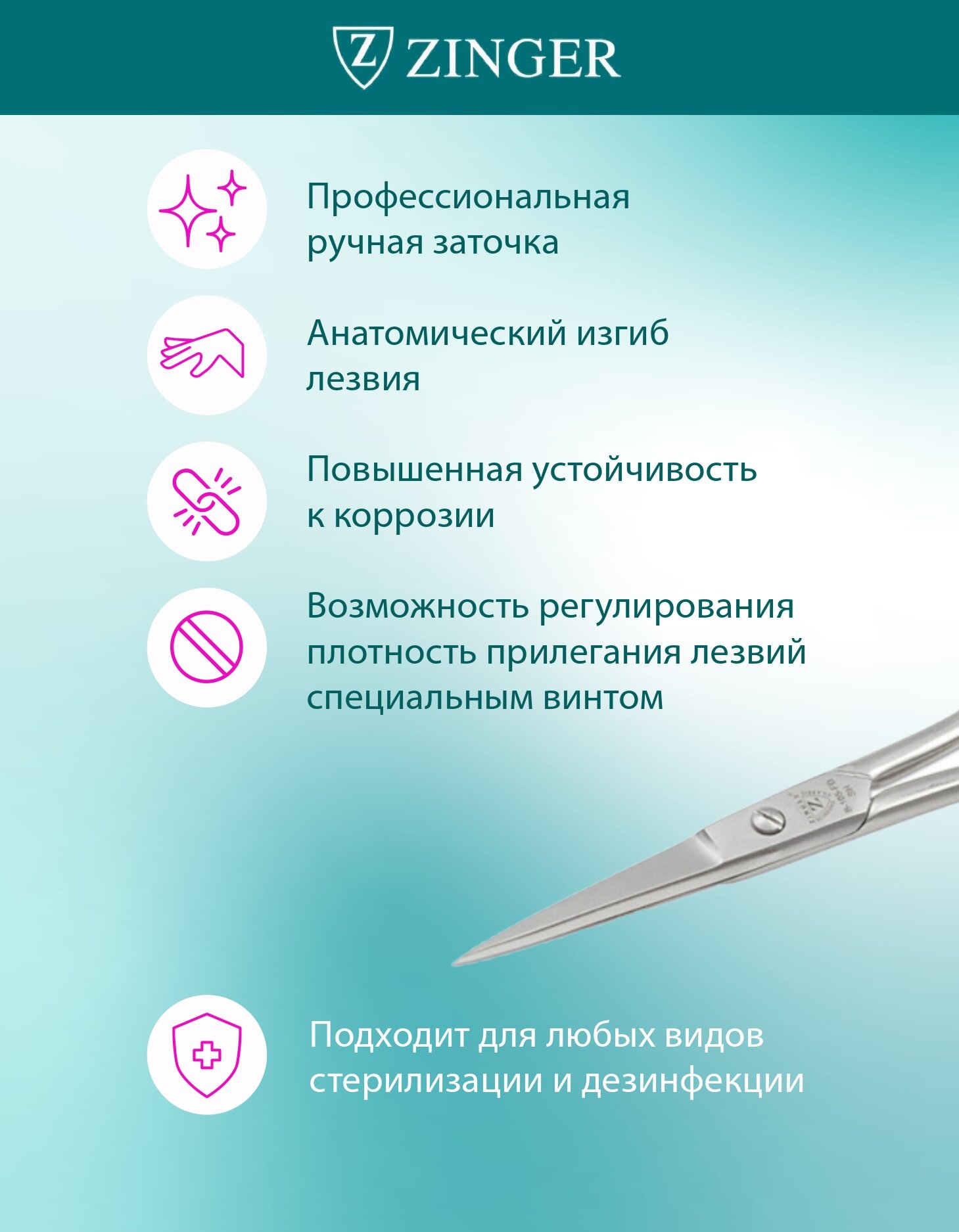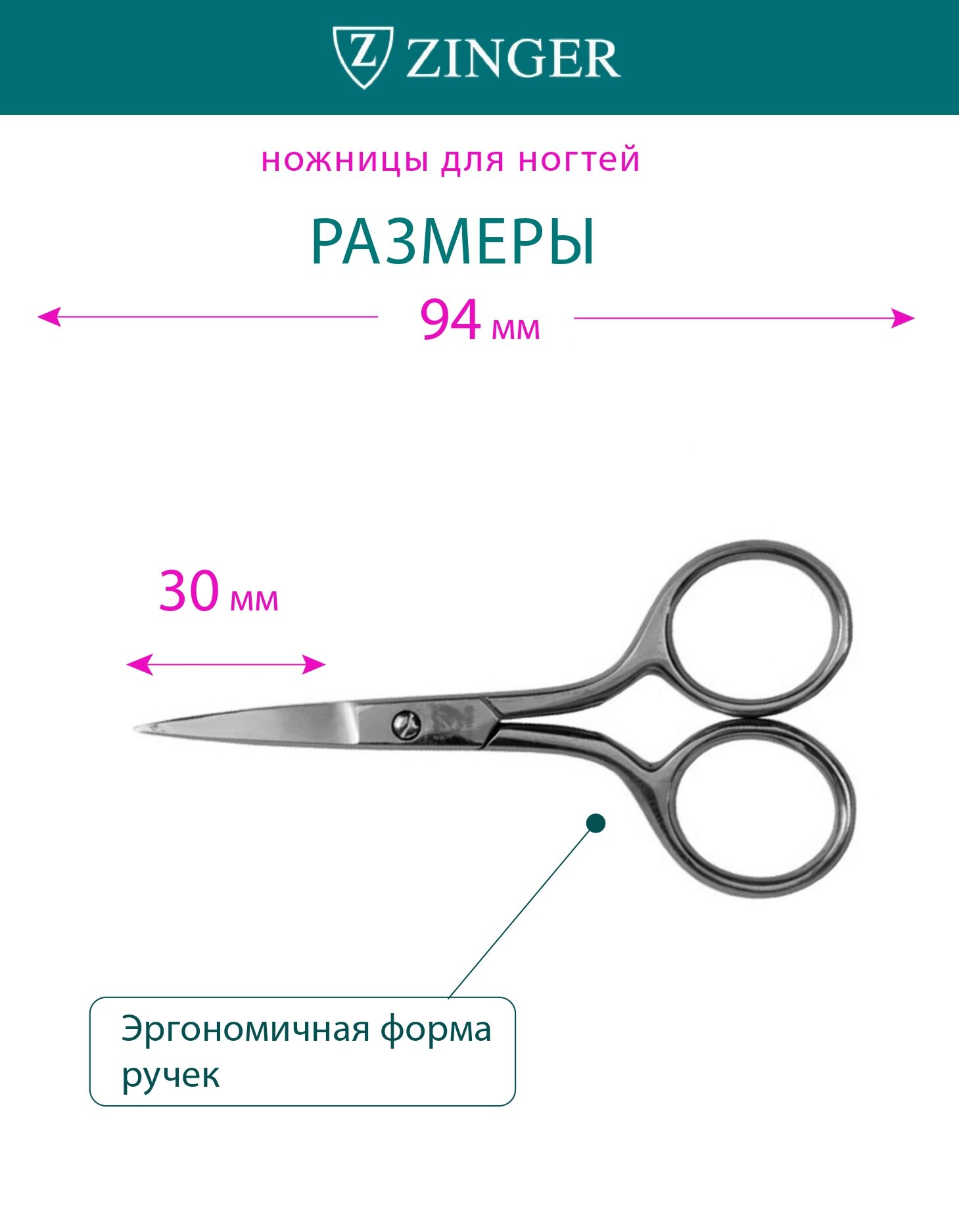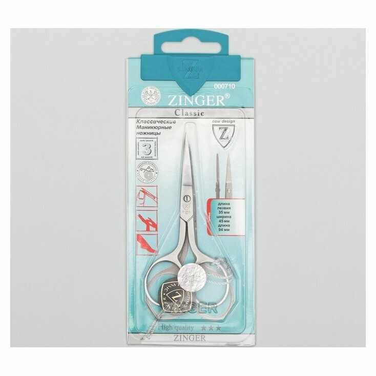 Ножницы маникюрные, прямые, с ручной заточкой Zinger