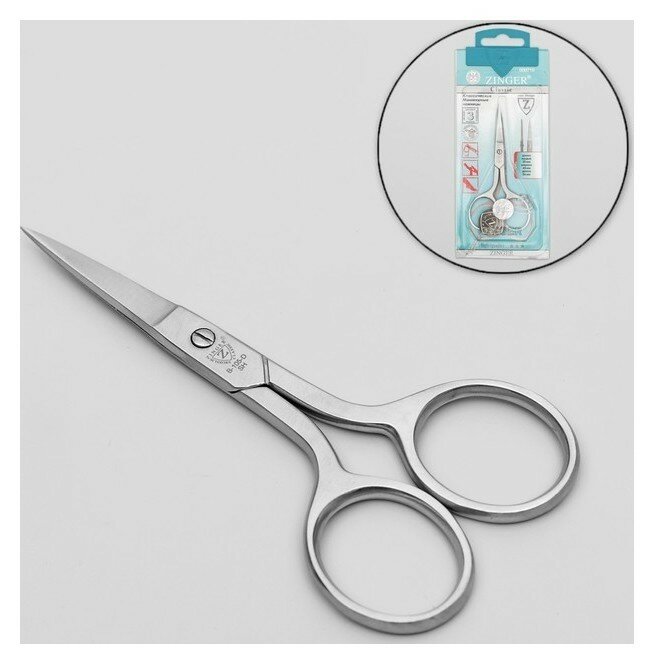 ZINGER Ножницы маникюрные, прямые, 9,5 см, на блистере, цвет серебристый, B-105-S-SH