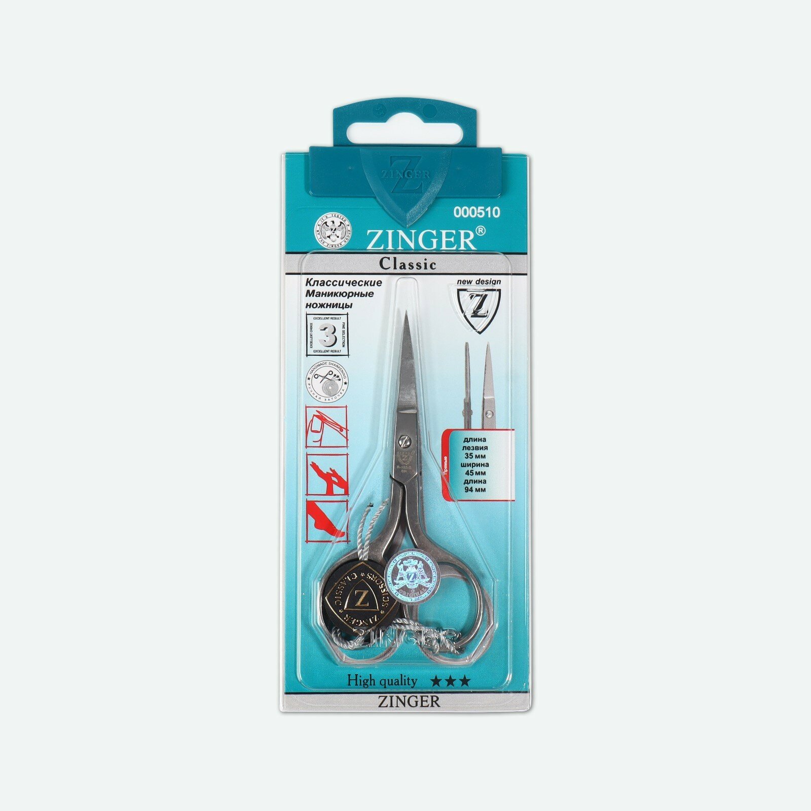 Ножницы маникюрные, прямые, с ручной заточкой Zinger