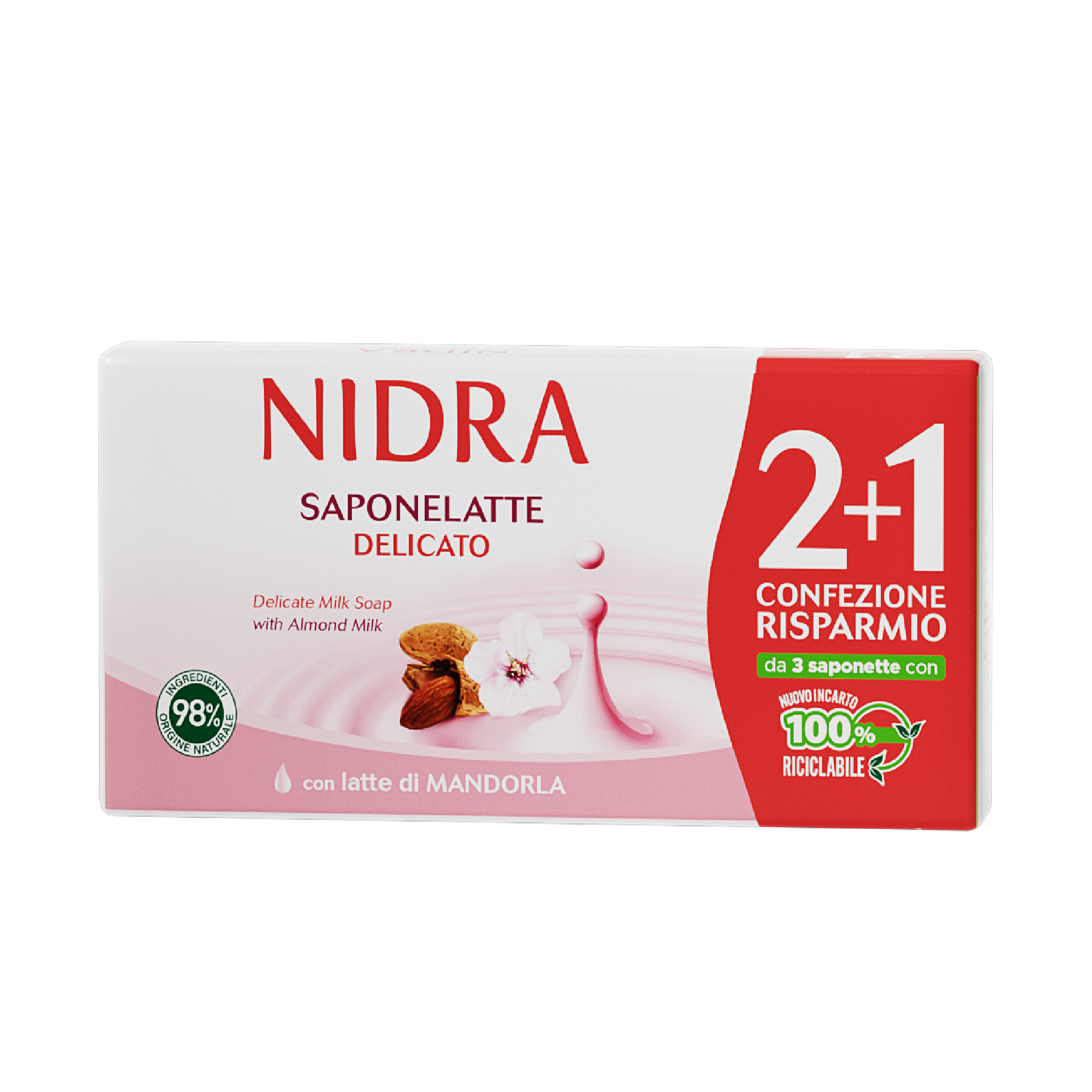 Nidra Мыло твердое увлажняющее с миндальным молоком 3*90гр