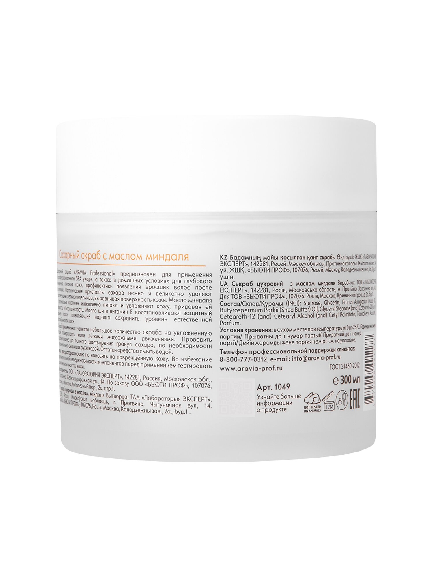 Сахарный скраб ARAVIA PROFESSIONAL для тела с маслом миндаля, 300 мл