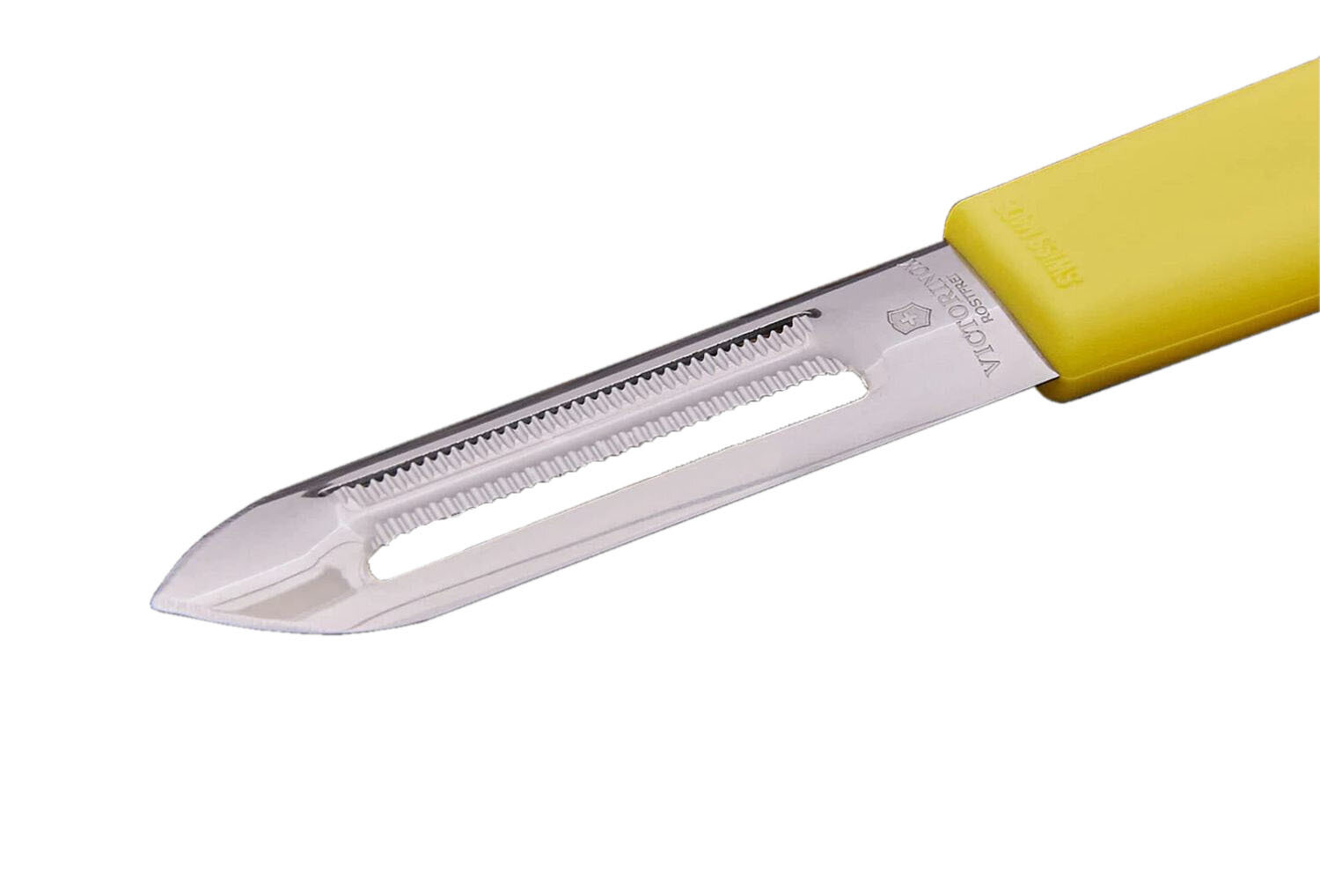 Купить Нож для чистки овощей VICTORINOX 7.6077.8, двустороннее зубчатое лезвие из нержавеющей стали, 16,5 см, желтый