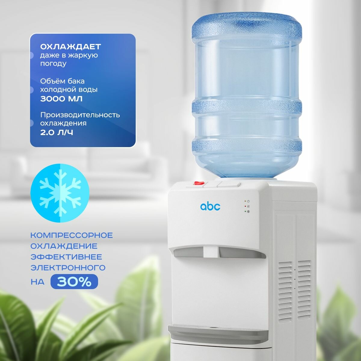 Кулер для воды HotFrost abc V100 белый / компрессорный / напольный / нажим кнопкой /нагрев +охлаждение