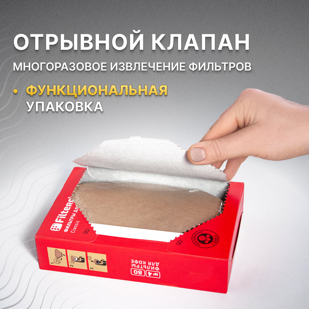 Фильтры для кофе, кофеварок, пуроверов и воронок трапециевидной формы Filtero Classic №4, неотбеленные, 80 шт.