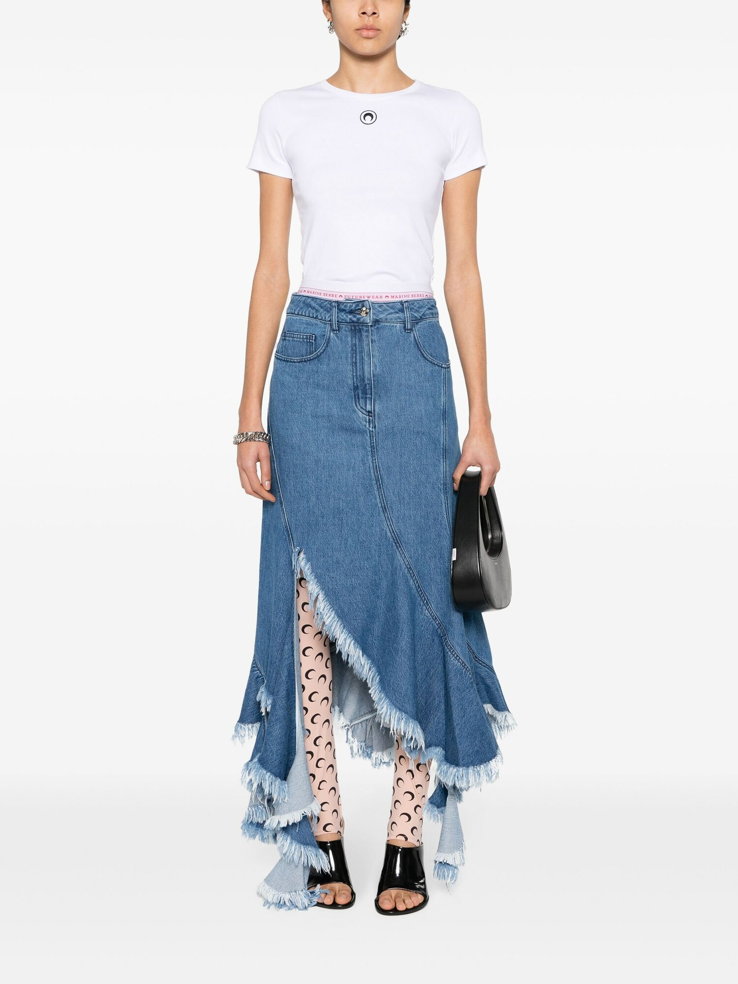 Marine Serre - Футболка с вышивкой - Женский - XS - Серебристый