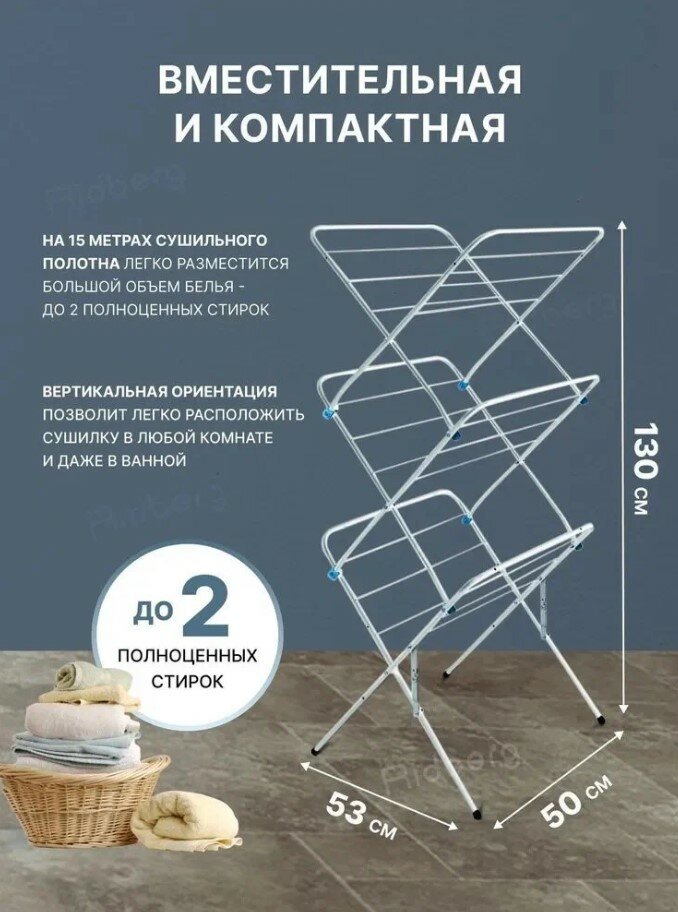 СохранитьСушилка напольн.вертик. для белья 15м (Д53*Ш49,5*В130см) металл,белый, макс.нагрузка=10кг, СБВ2/Б Nika (арт. 709705) интересное: