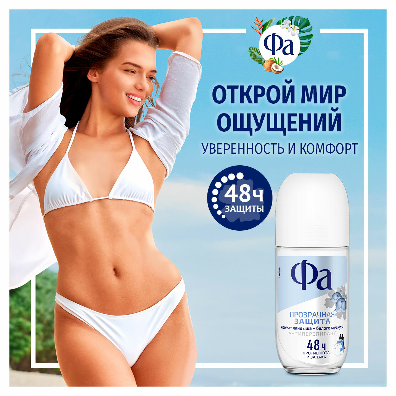 Дезодорант-антиперспирант шариковый «Фа» Прозрачная защита, 50 мл