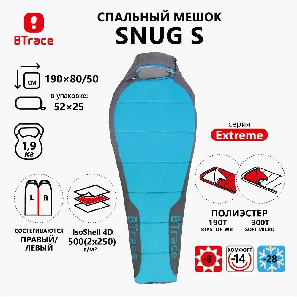 Купить Спальный мешок BTrace Snug S size Левый (Левый,Серый/Синий)