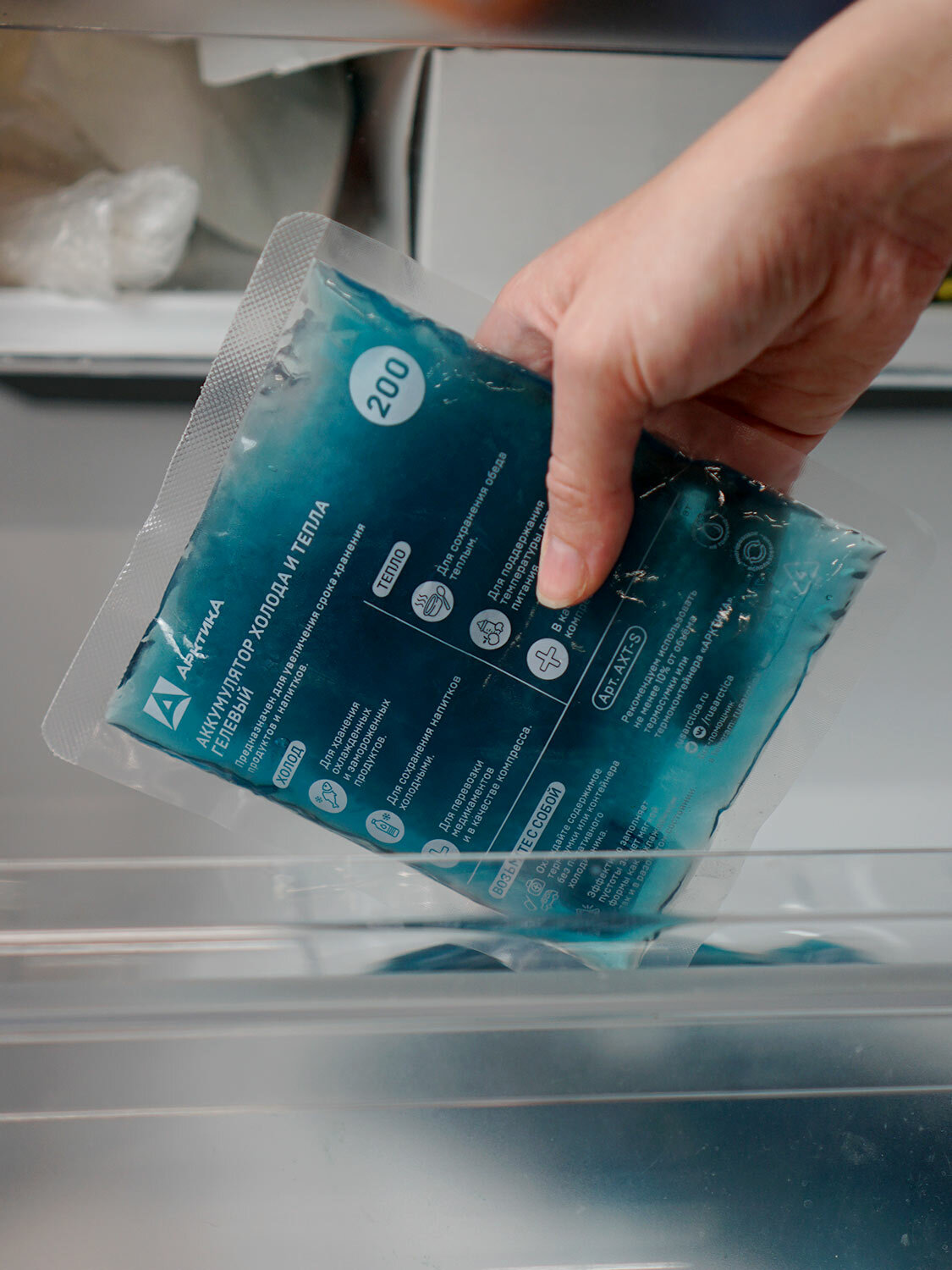 Гелевый аккумулятор температуры тепла и холода для термосумки и термоконтейнера Арктика АХТ-200, хладоэлемент 200 мл.
