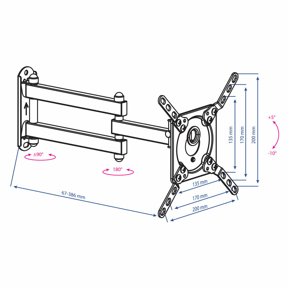 Кронштейн настенный Kromax DIX-14 Kromax_20263 для LED/LCD TV 15-42", макс. 20кг, 5ст.свободы, от стены 67-386мм, макс. VESA 200x200, черный