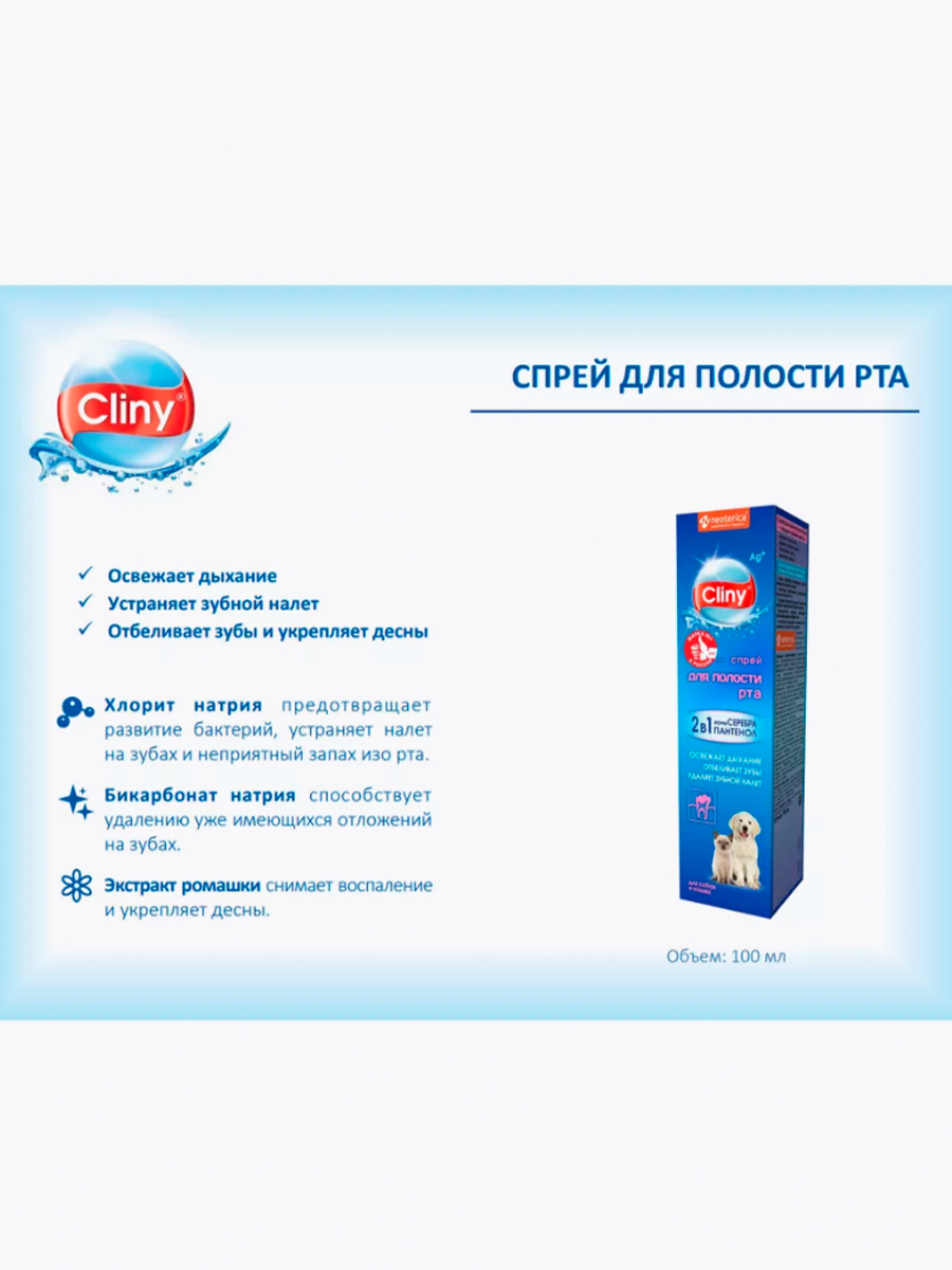 Спрей для полости рта Cliny, для кошек и собак, 100 мл
