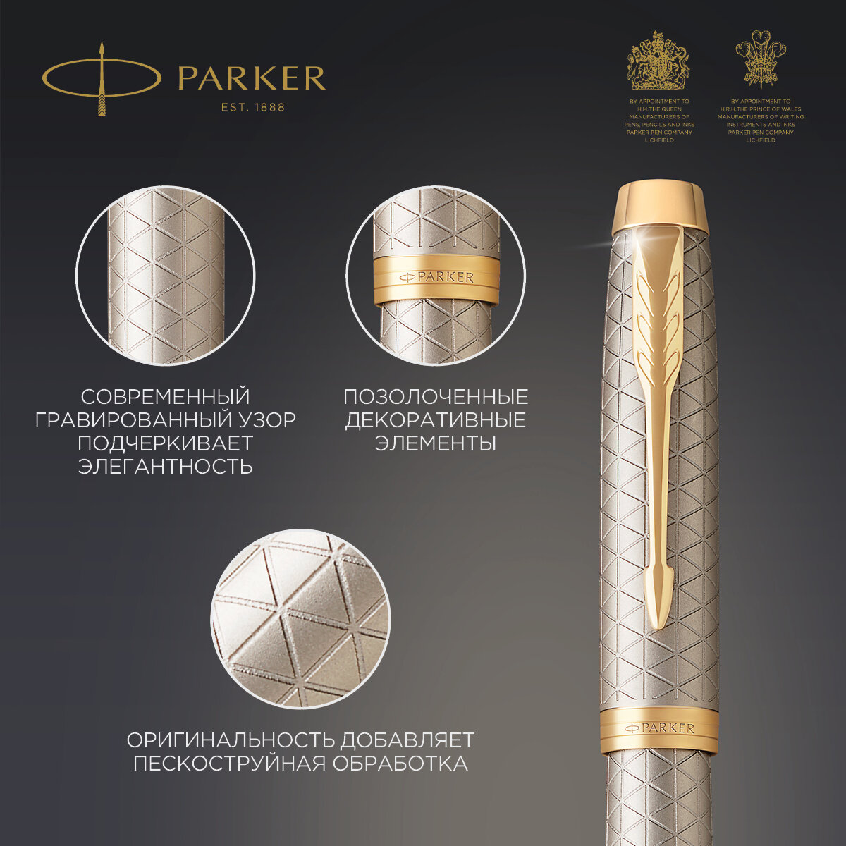 Ручка перьевая PARKER IM Premium Warm Silver GT, корпус серебристый матовый с гравировкой, позолоченные детали, синяя, 1931684