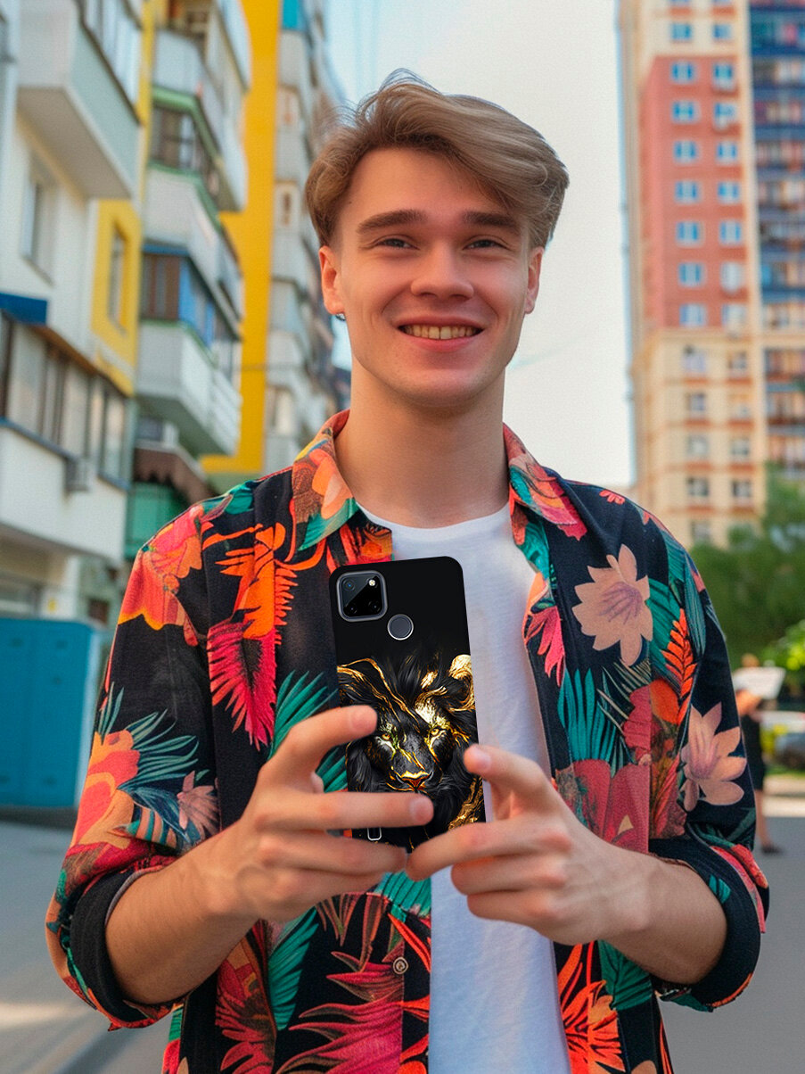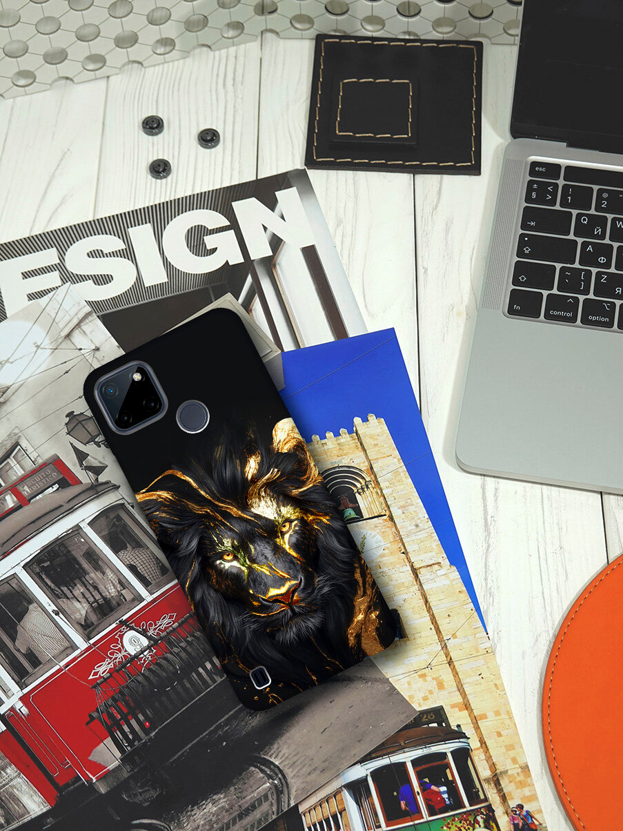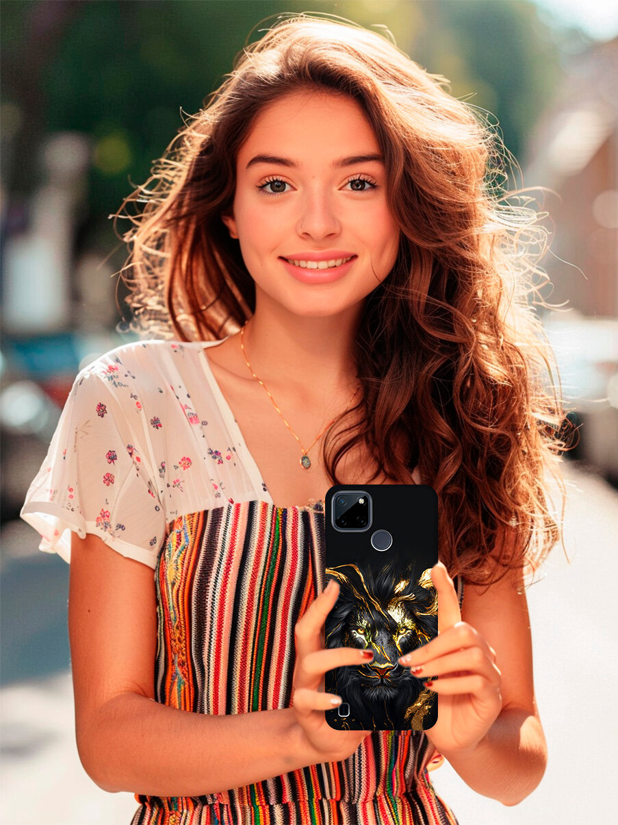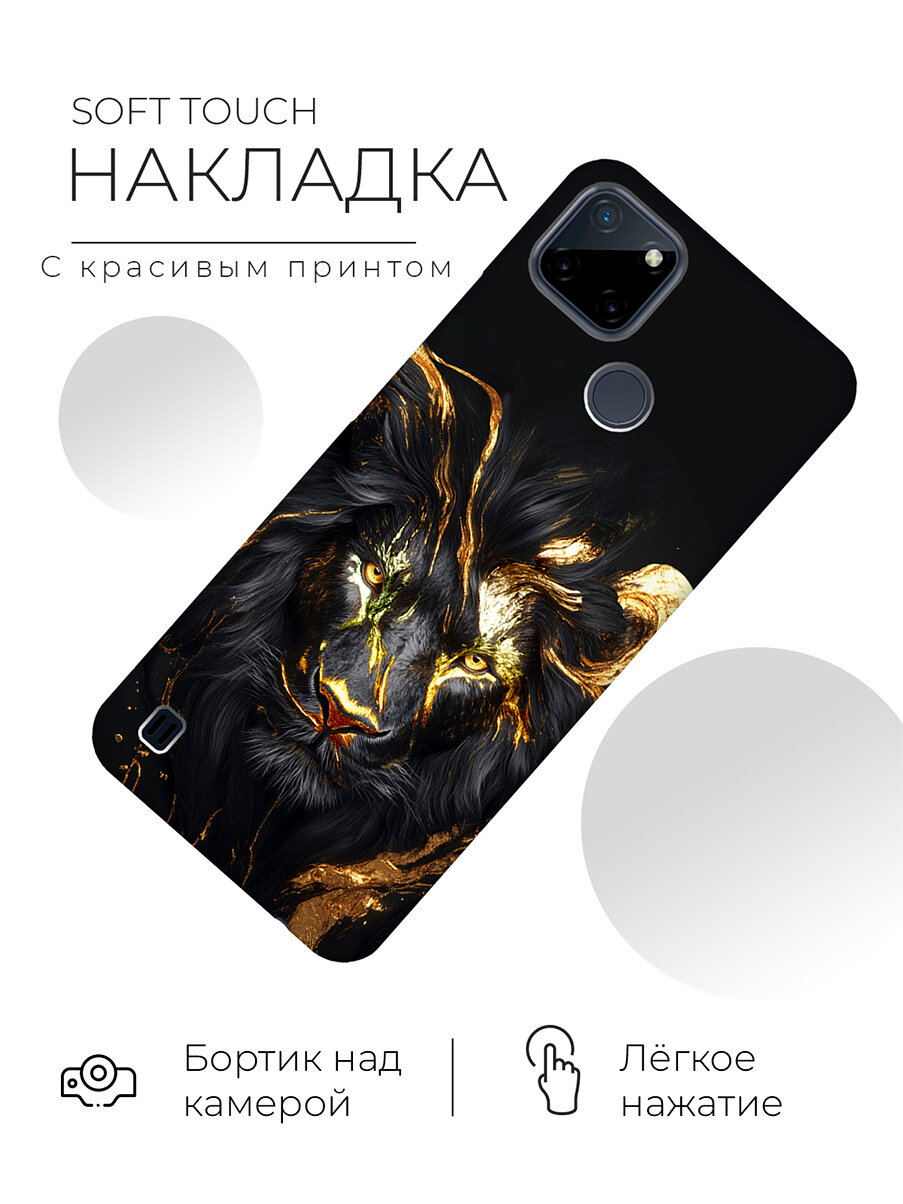 Купить Силиконовый чехол на Realme C21Y с принтом "Золотой лев" матовый черный