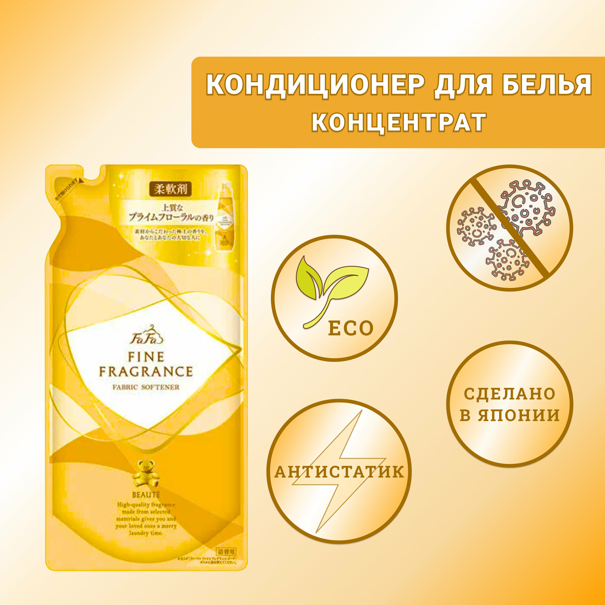 Nissan FaFa "Beaute" Японский антистатический кондиционер для белья с ароматом цветов, мускуса и сандалового дерева Fine Fragrance, 500 мл. (м/у)