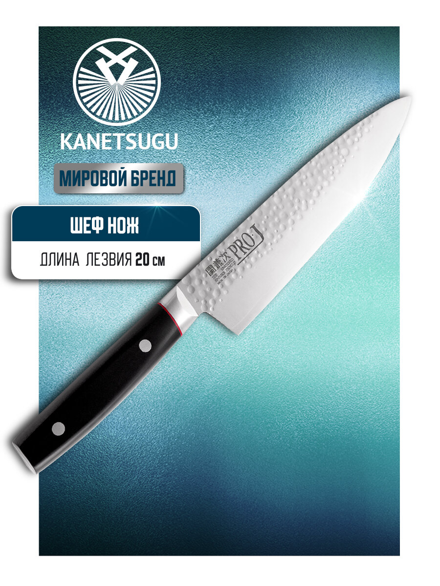 Kanetsugu Нож Кухонный Поварской шеф (6005), длина лезвия 20,0 см, сталь VG-10, 3 слоя, рукоять Eco-wood, Япония интересное: