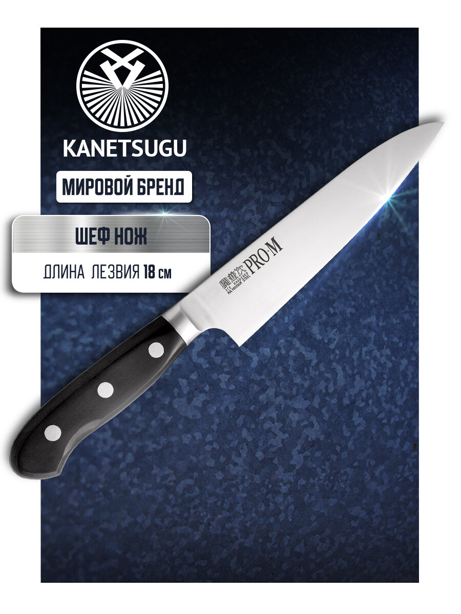 Нож Кухонный Поварской шеф Kanetsugu (7004), длина лезвия 18,0 см, сталь 1K6, рукоять ламинированное дерево, Япония интересное: