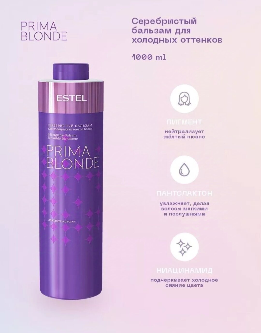 Estel, серебристый бальзам prima blonde, для холодных оттенков блонд, 1 л