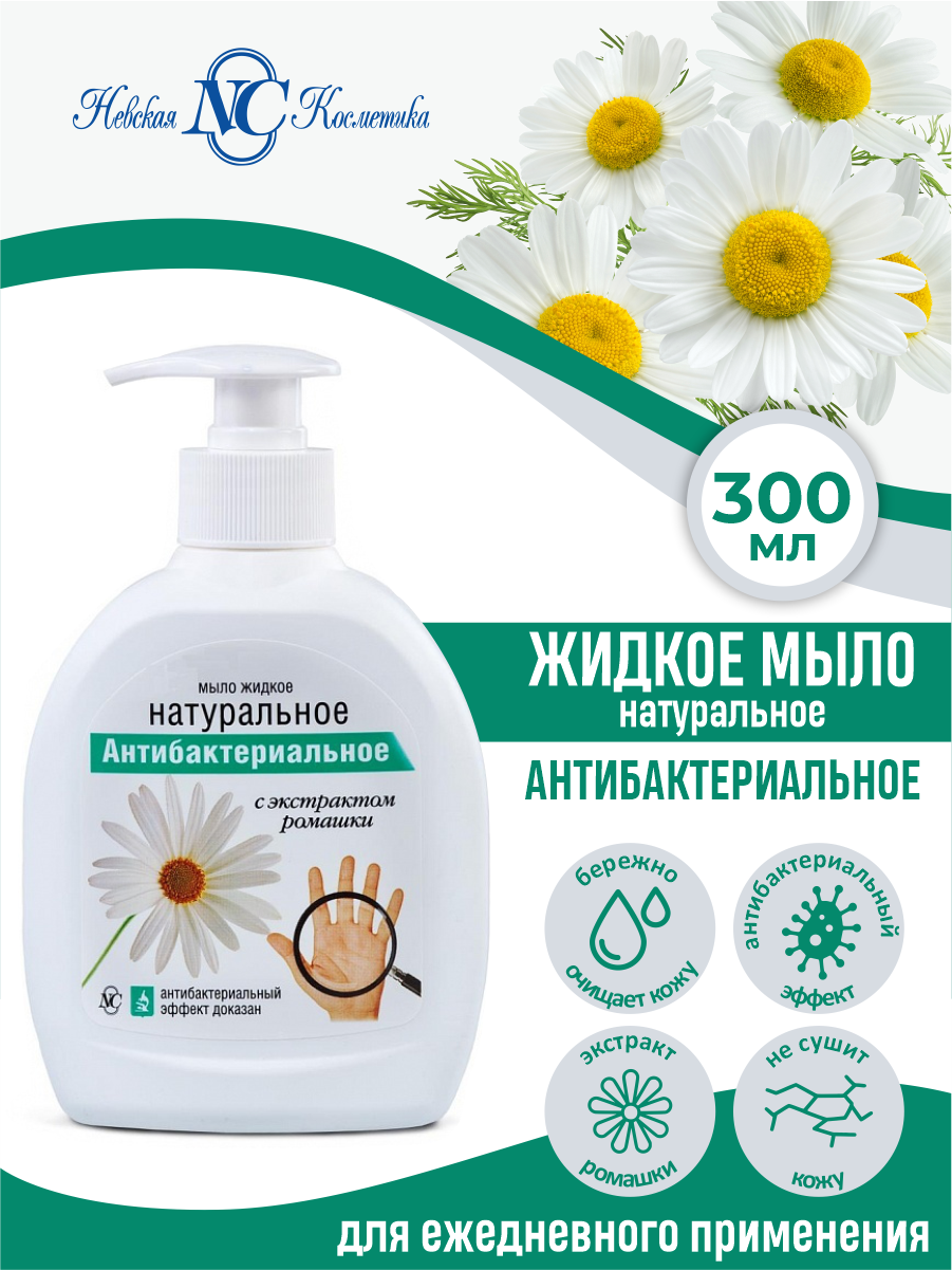 Мыло Невская Косметика «Натуральное», с экстрактом ромашки, антибактериальное, 300 мл