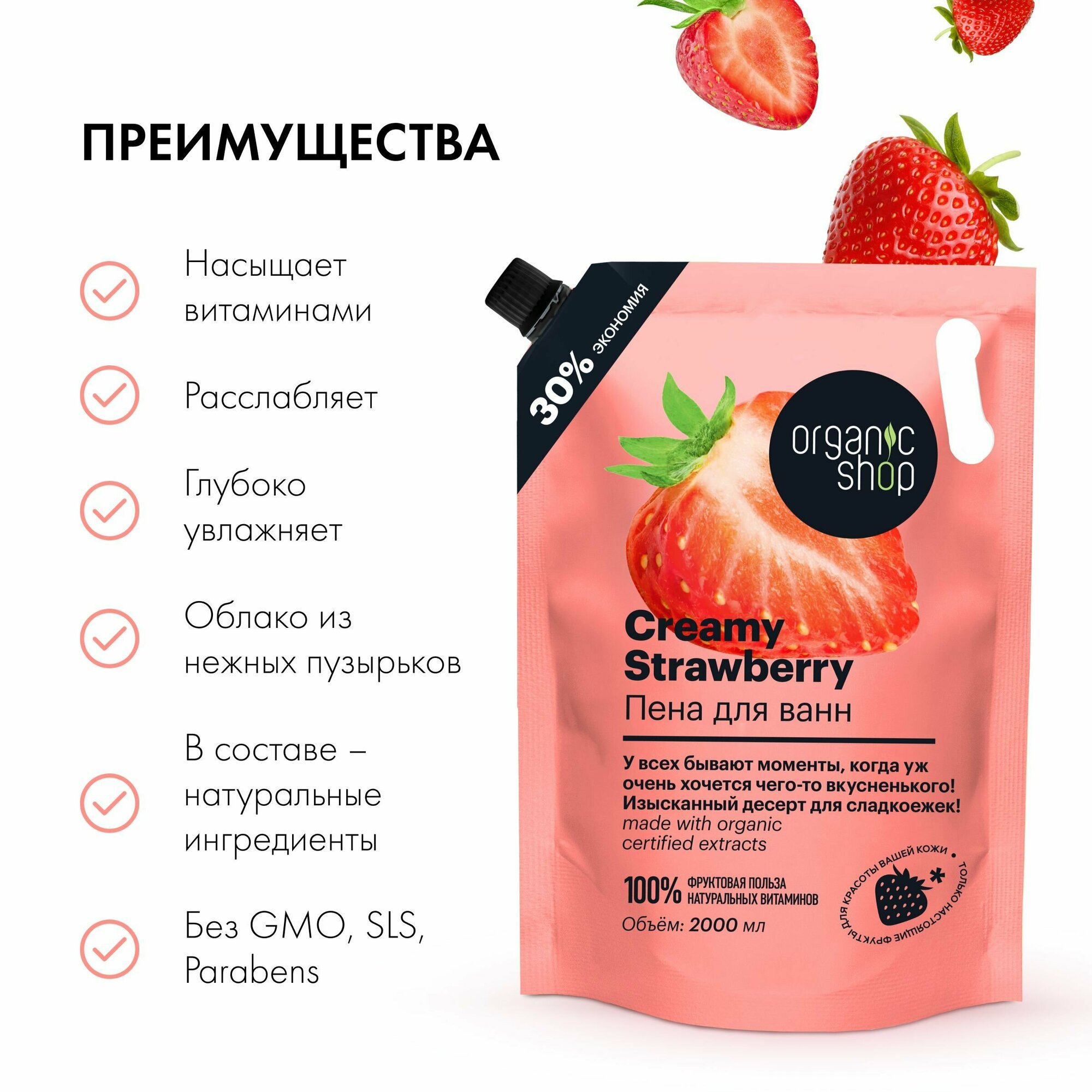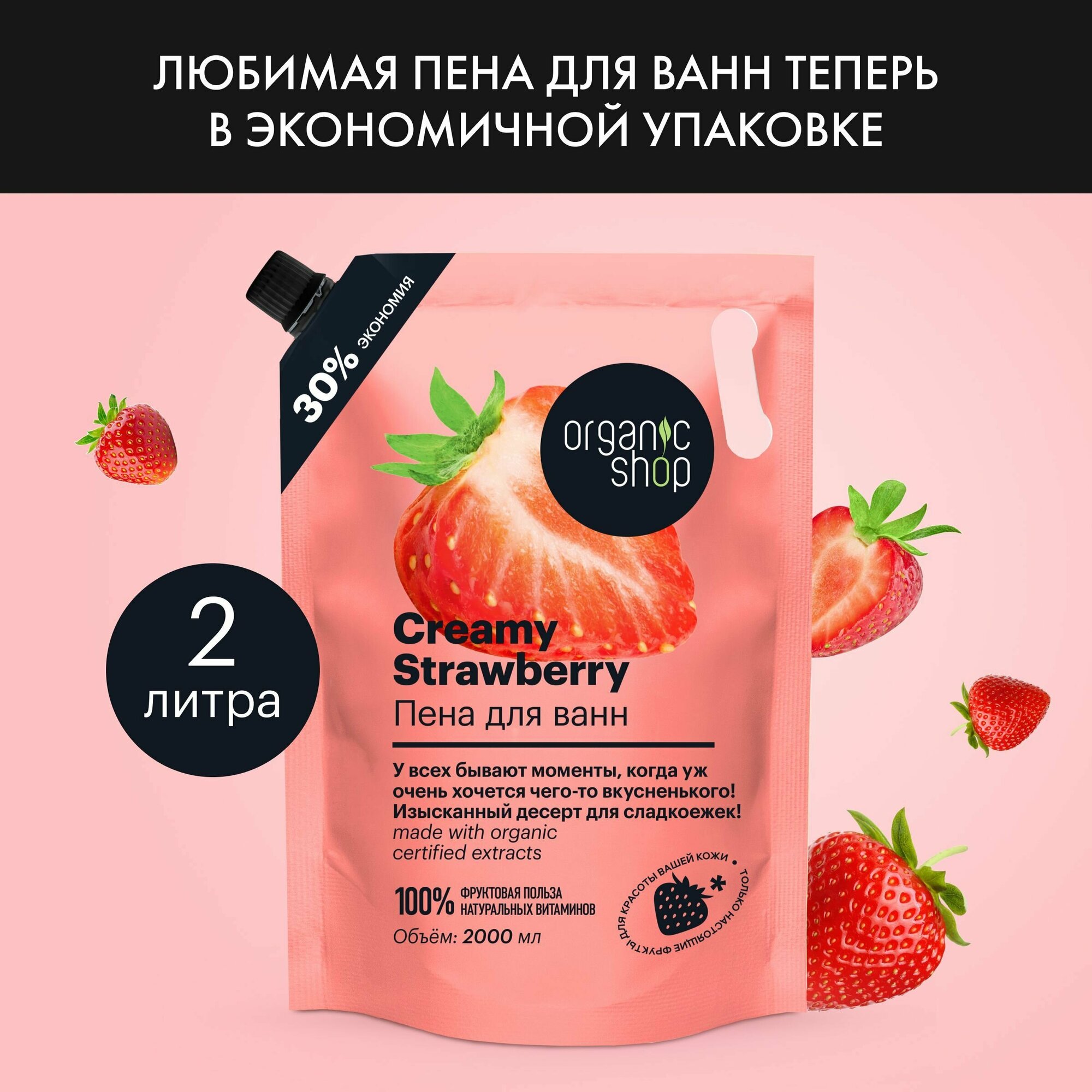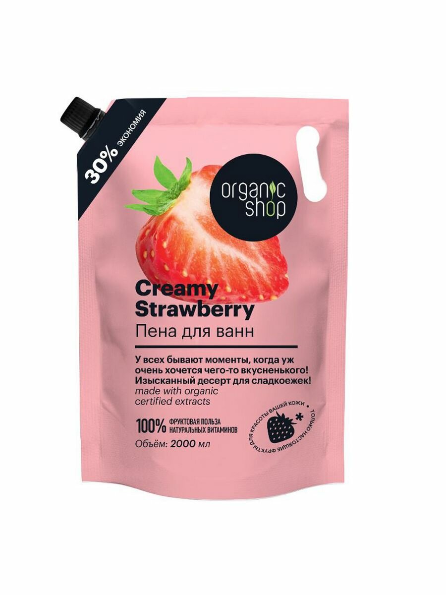 Купить Пена для ванн Organic Shop Home Made Creamy Strawberry с ароматом клубники 2000 мл