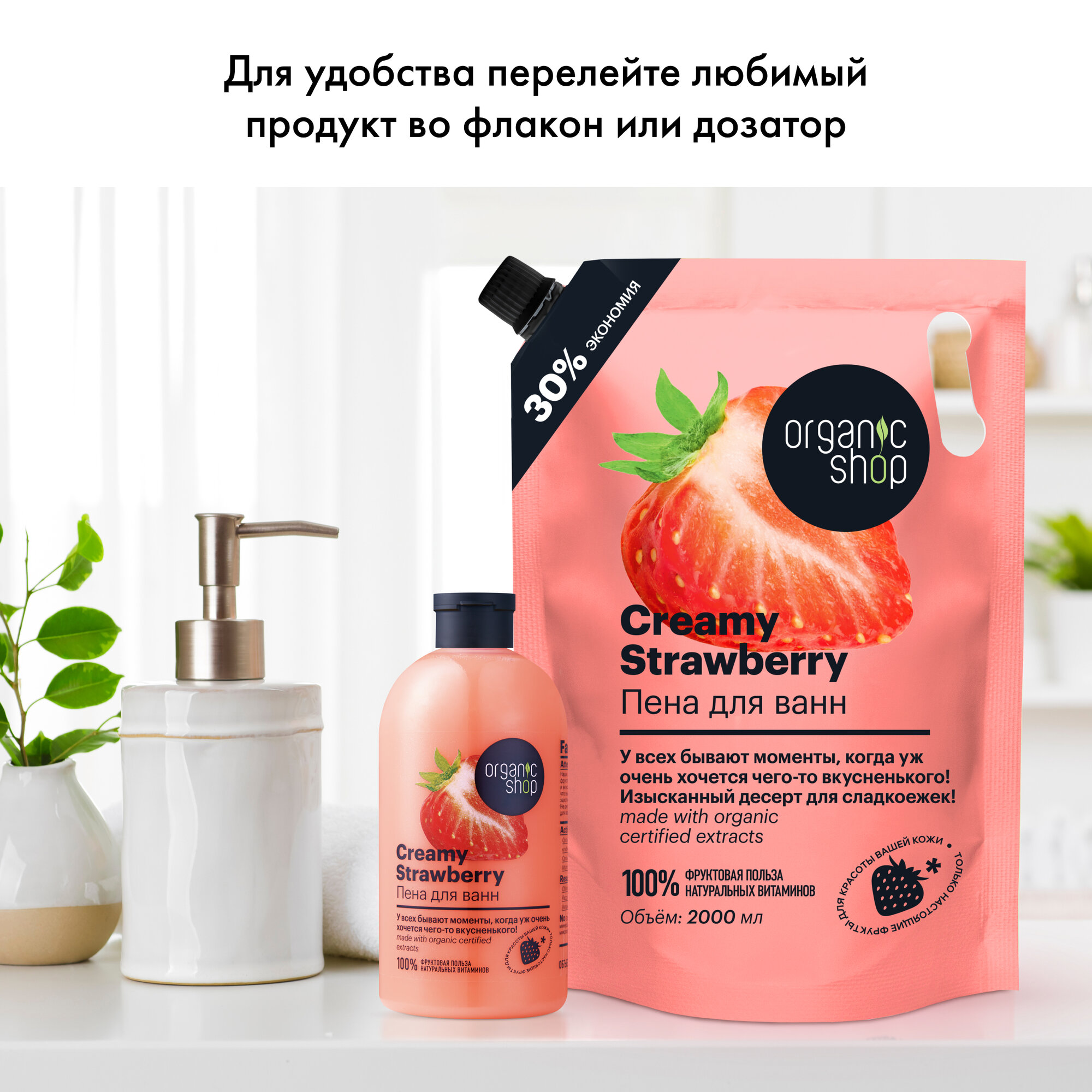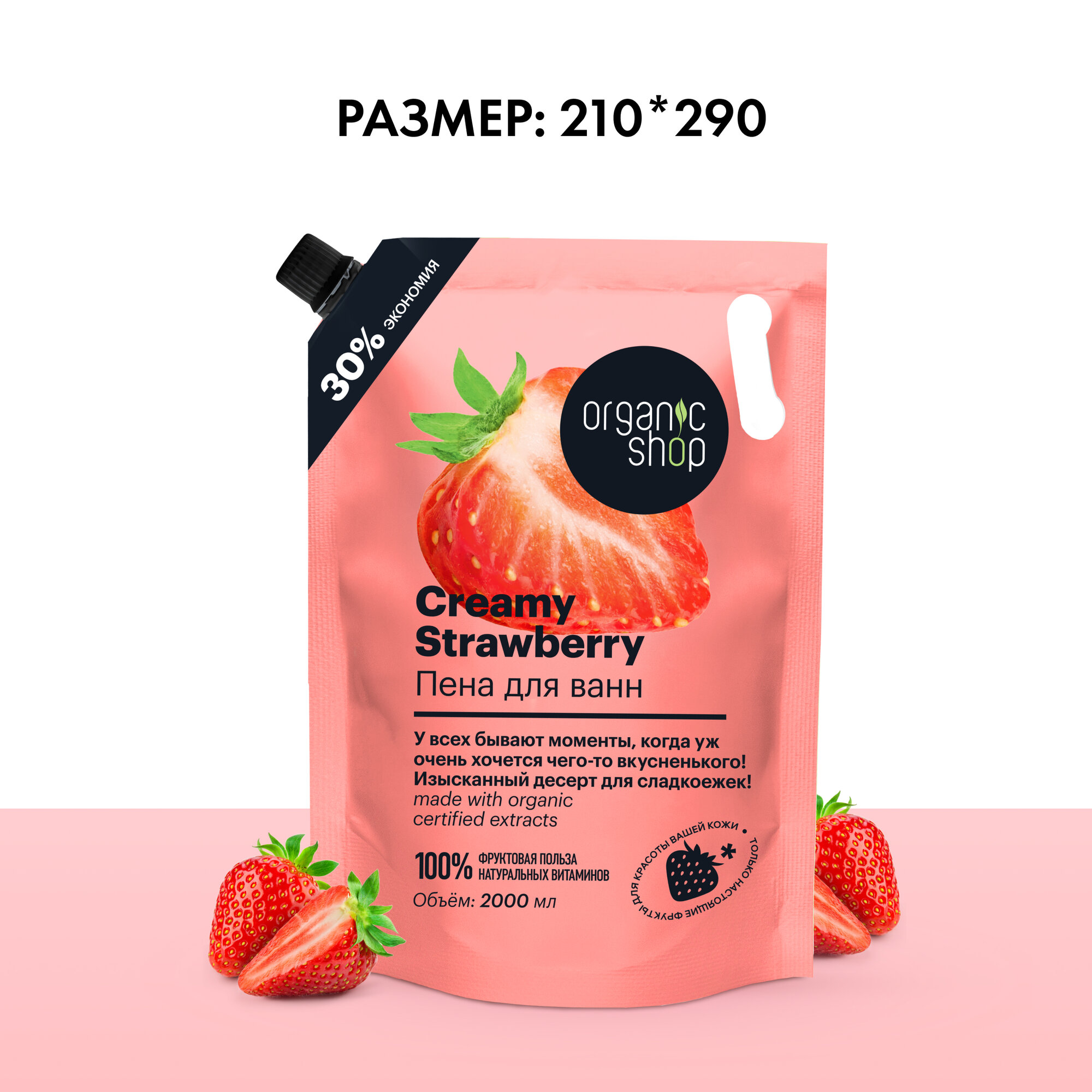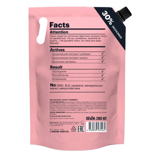 ORGANIC SHOP, фрукты, Пена для ванн, Клубника со сливками, 500 мл