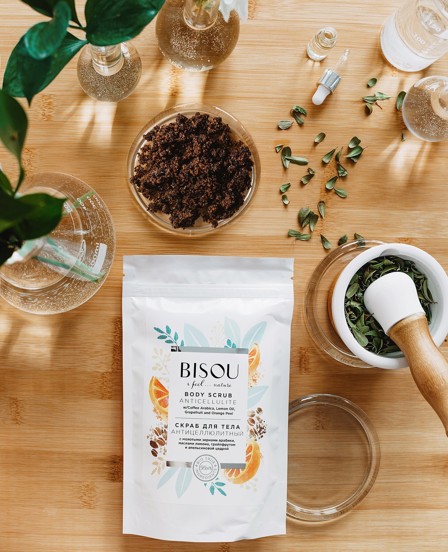 BISOU Скраб для тела Антицеллюлитный, с арабикой, маслами гейпфрута, апельсиновой цедрой, 200 г интересное: