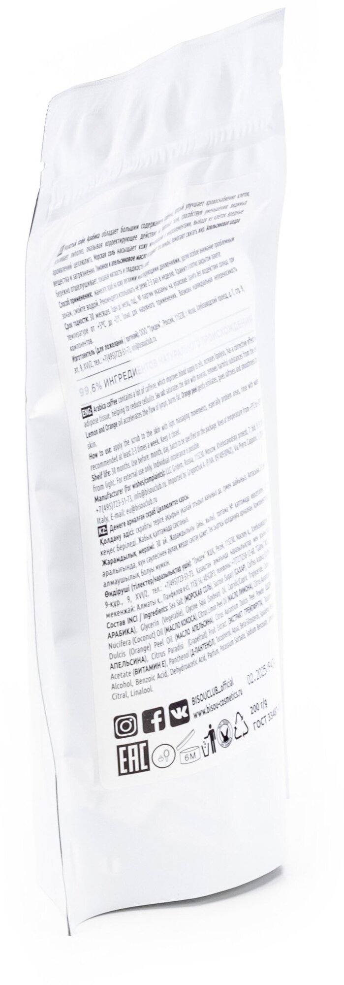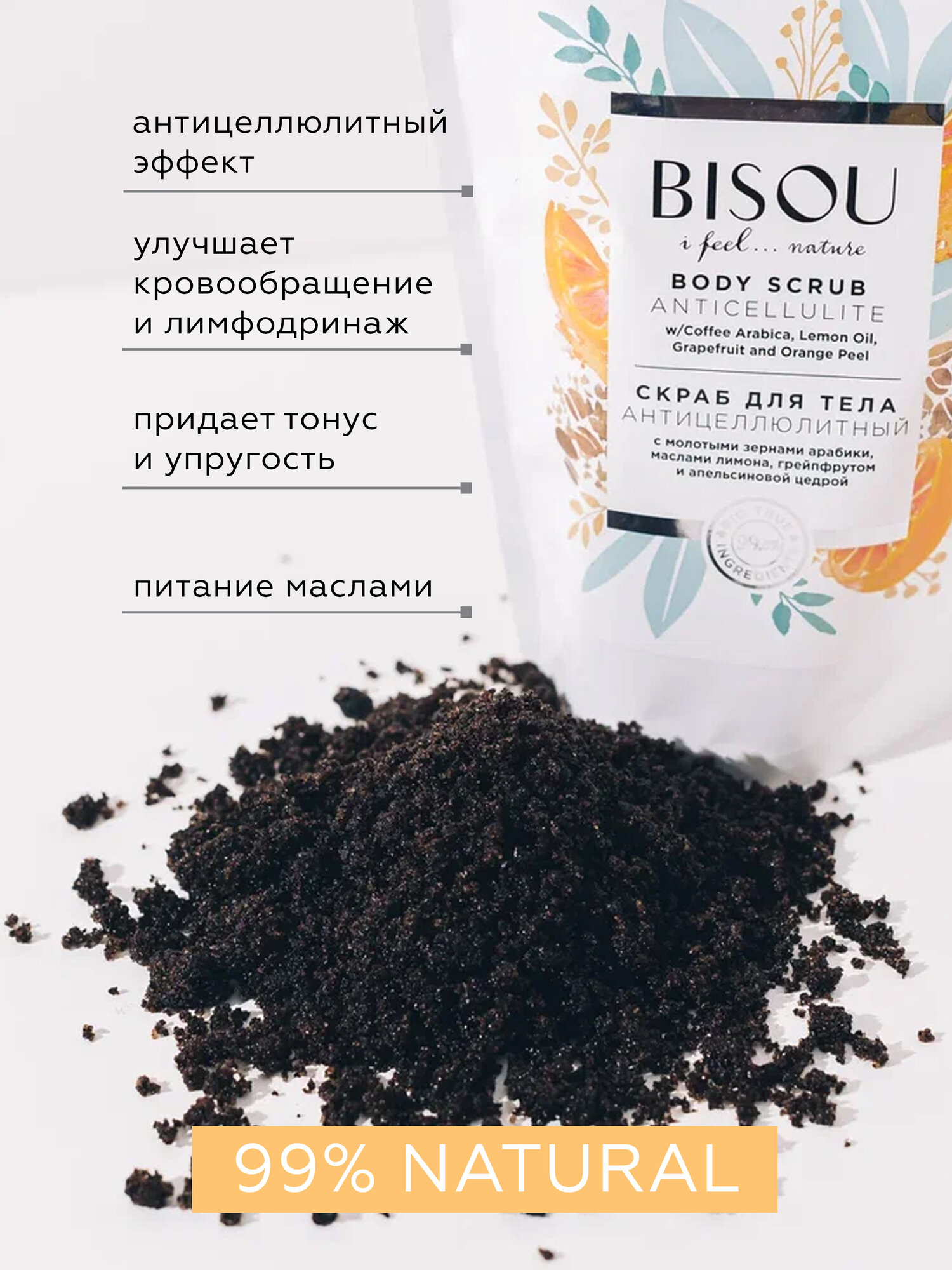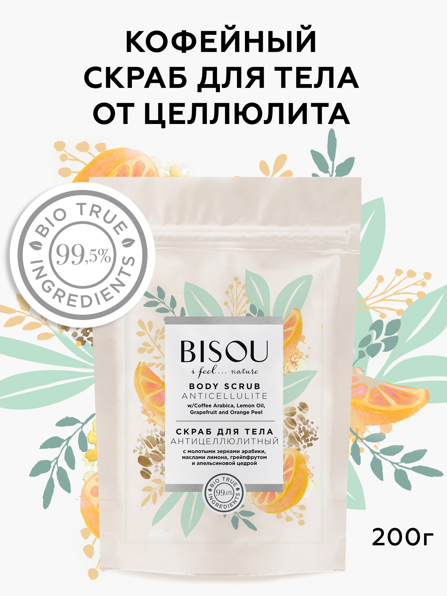 Купить BISOU Скраб для тела Антицеллюлитный, с арабикой, маслами гейпфрута, апельсиновой цедрой, 200 г