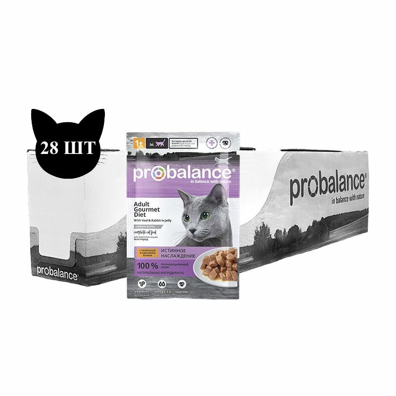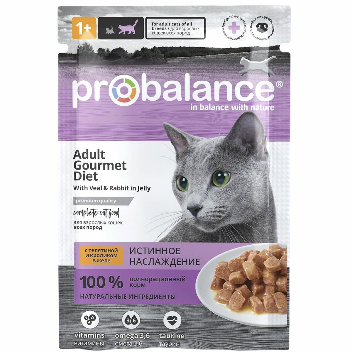 ProBalance Adult Gourmet Diet Veal & Rabbit Корм консервированный для кошек с телятиной и кроликом в желе, пауч, 85 гр*28 шт.