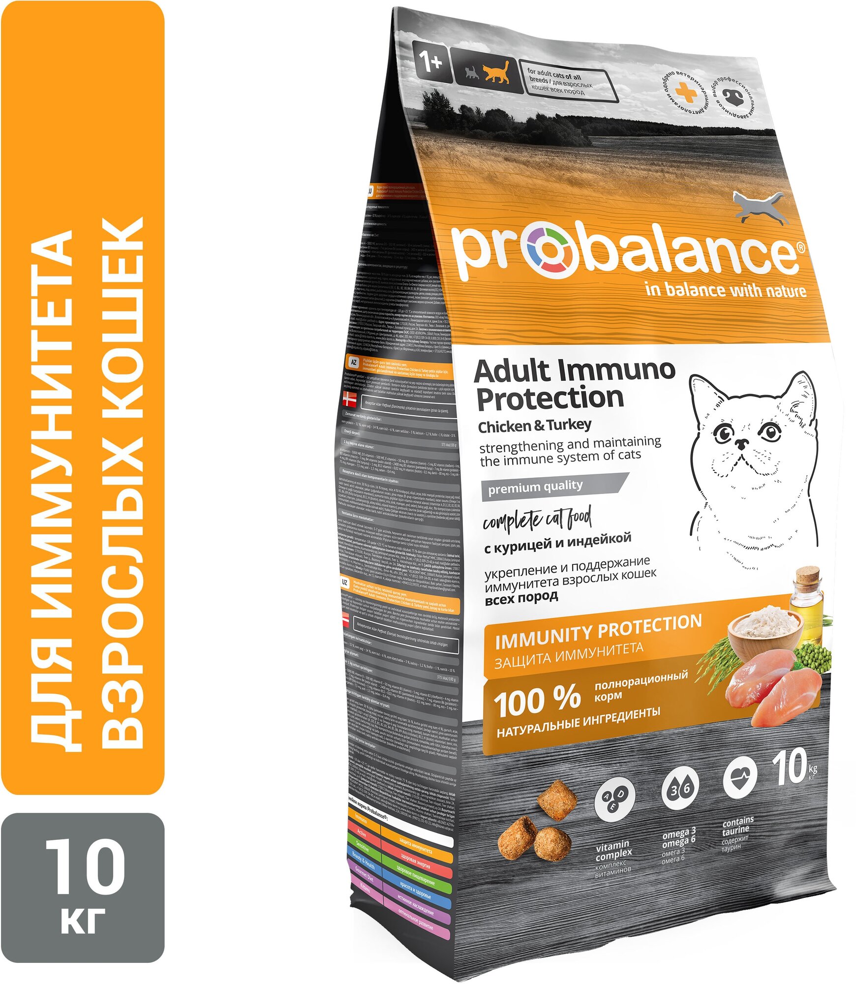 Корм для кошек ProBalance Adult Immuno Protectionсухой для кошек с курицей и индейкой, 10 кг