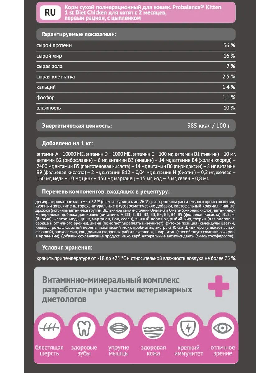 СохранитьProBalance 1st Diet Kitten Пробаланс сухой корм для котят беременных и кормящих кошек 10кг интересное: