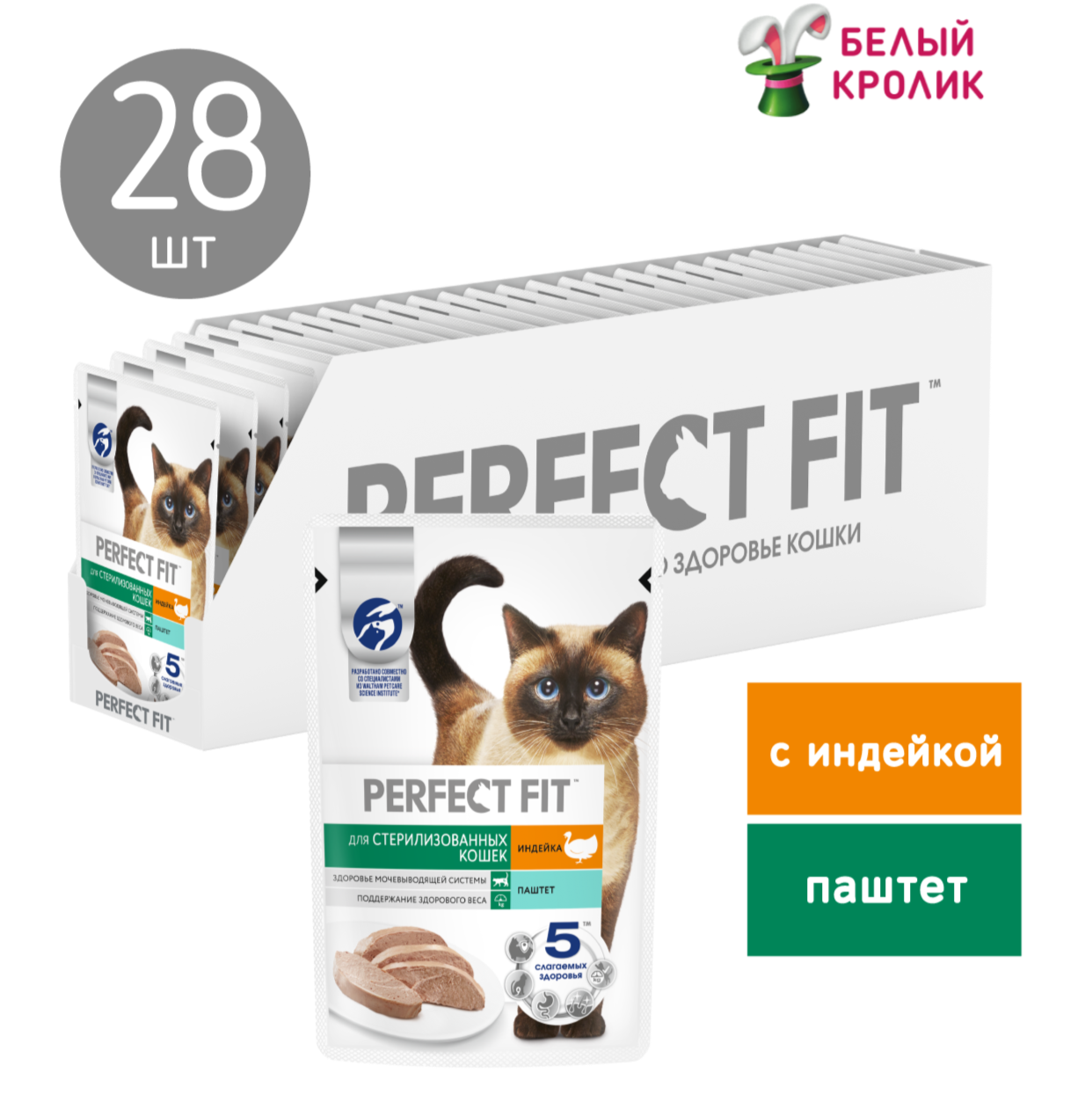 Влажный корм PERFECT FIT™ для стерилизованных кошек, паштет с индейкой, 28 шт по 75г шоубокс