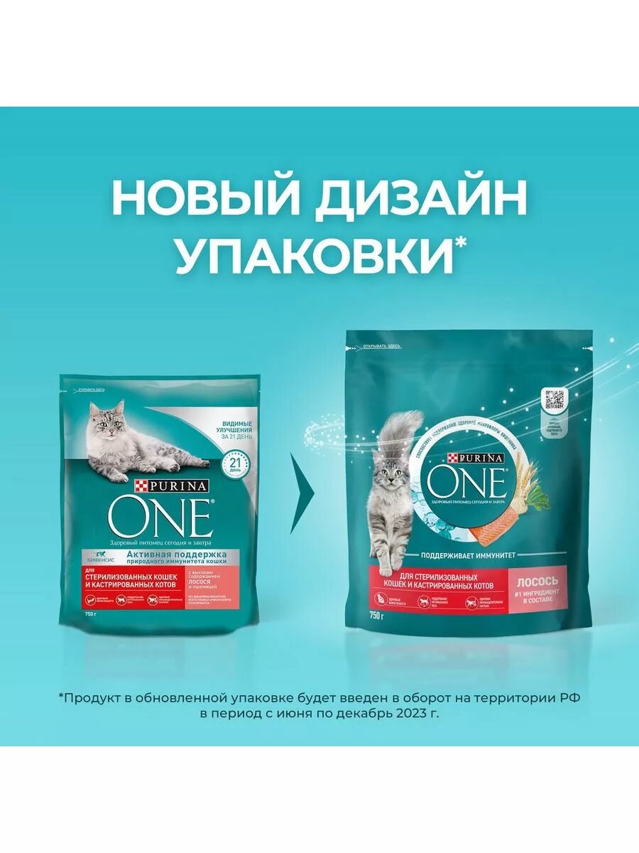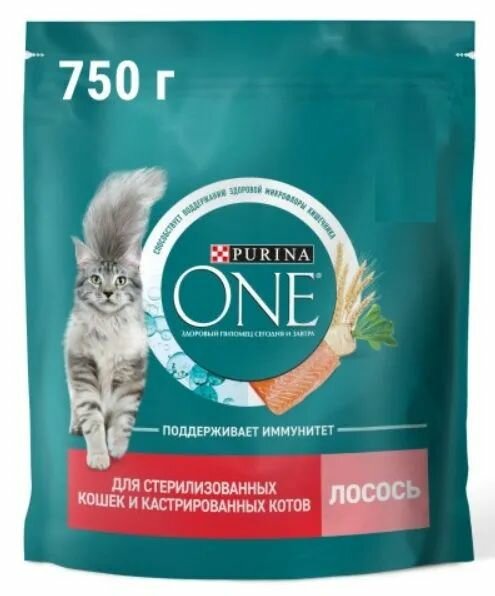 Купить Сухой корм Purina ONE для стерилизованных кошек и кастрированных котов, со вкусом Лосось 750 г