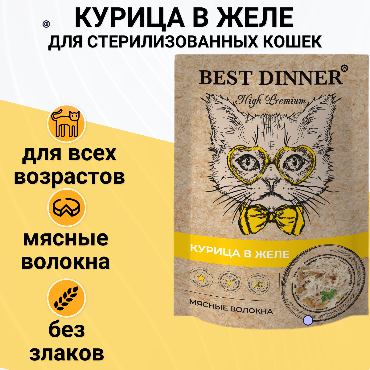 BEST DINNER HIGH PREMIUM для взрослых кошек c курицей в желе пауч 85 гр 85 гр х 10 шт