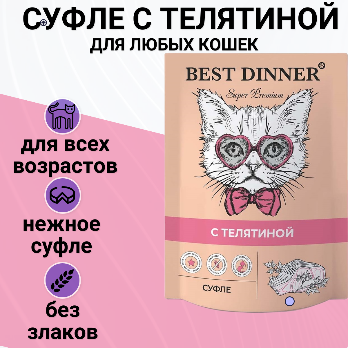 Корм для кошек BEST DINNER Мясные деликатесы Суфле телятина пауч 85г (упаковка - 24 шт)