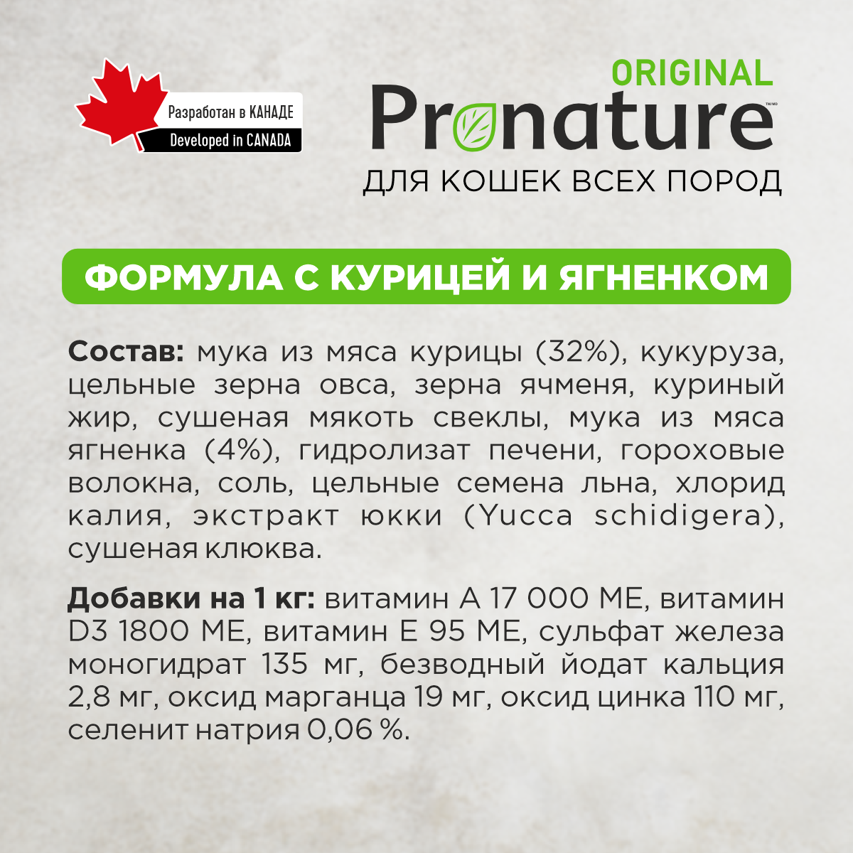 Pronature - Корм для кошек, курица и ягненок (Original) 2.27кг