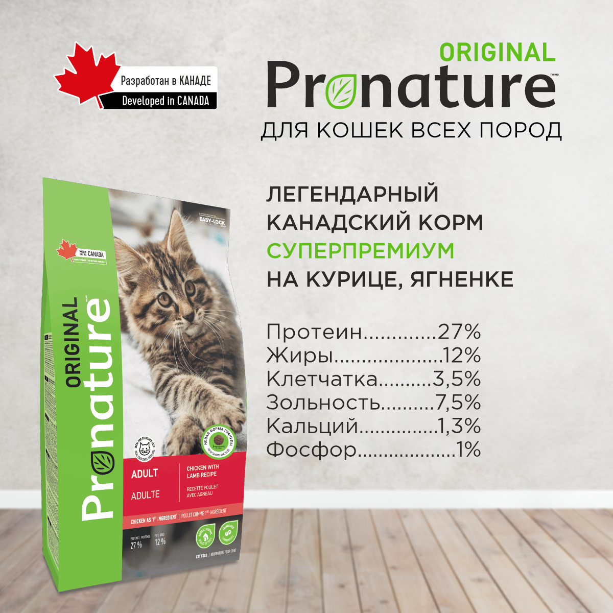 PRONATURE ОRIGINAL ADULT 5 кг корм для кошек, курица с ягненком
