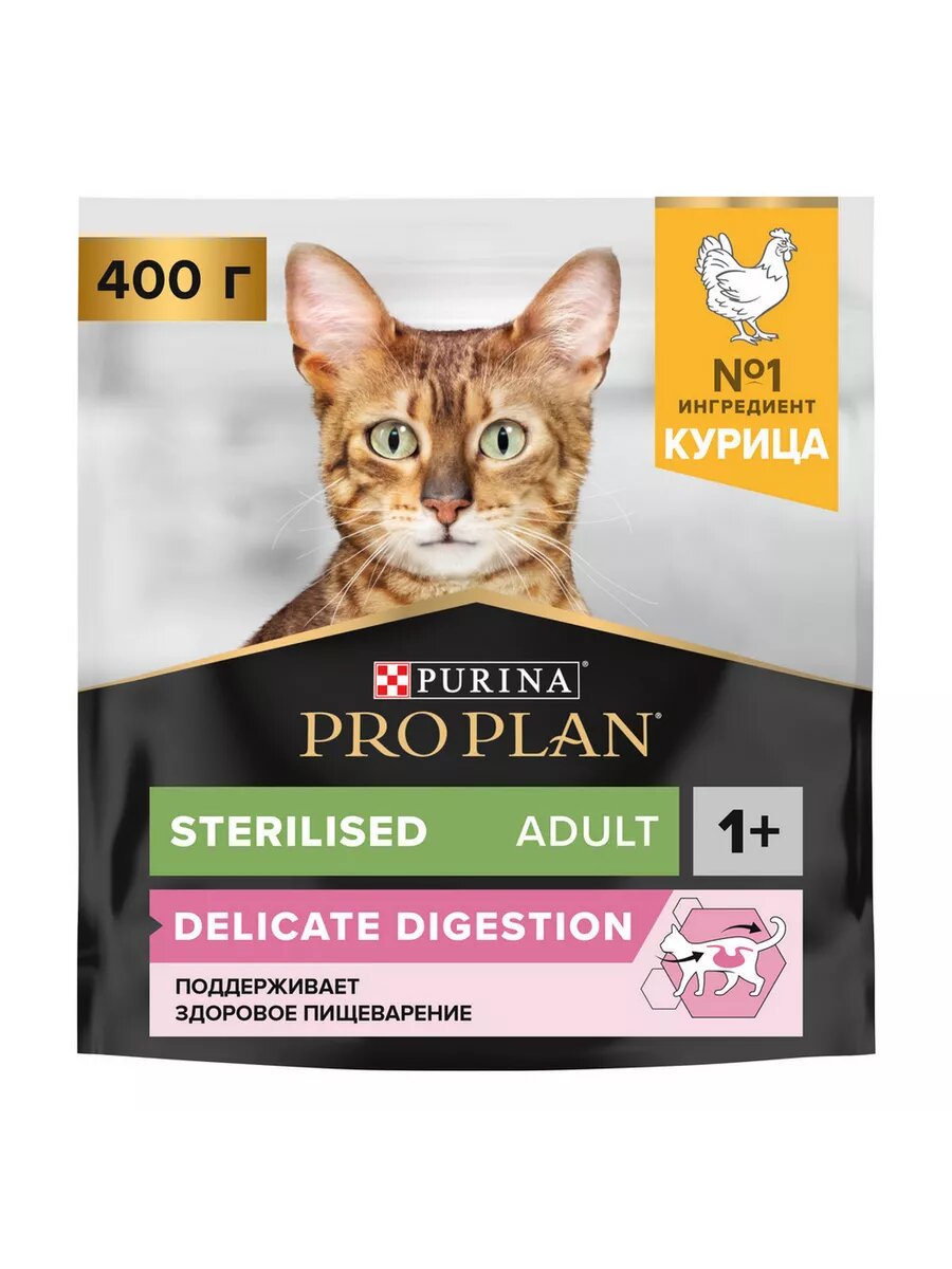 Сухой корм PRO PLAN Sterilised Adult DELICATE DIGESTION для взрослых стерилизованных кошек с чувствительным пищеварением, с высоким содержанием курицы 400 г
