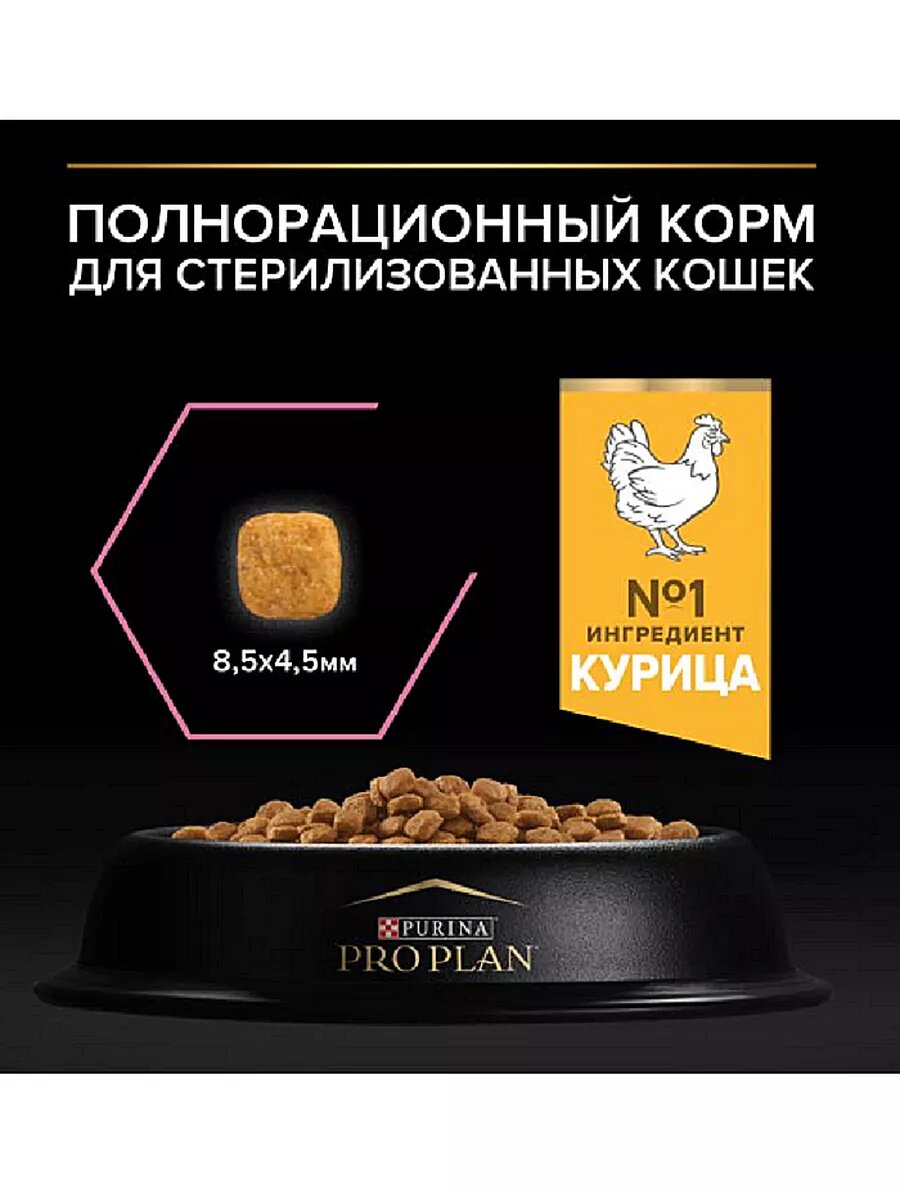 Pro Plan корм для взрослых стерилизованных кошек всех пород, курица 1,5 кг