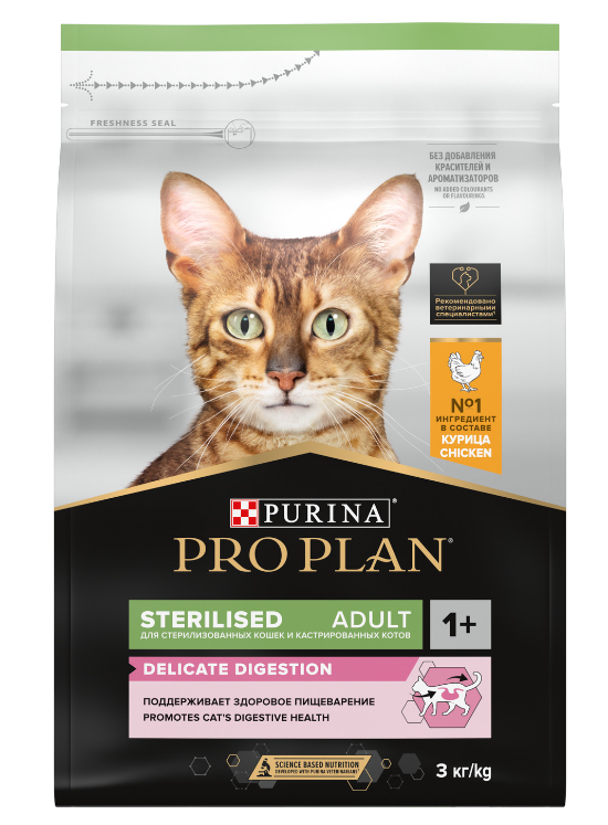 Сухой корм PRO PLAN® Sterilised Adult DELICATE DIGESTION для взрослых стерилизованных кошек с чувствительным пищеварением, с высоким содержанием курицы 3 кг