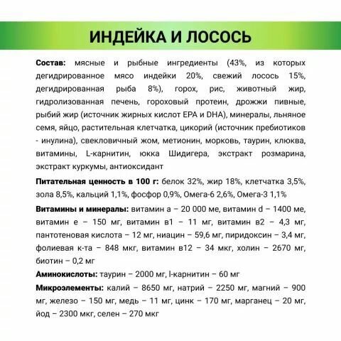 | Вкус | индейка |