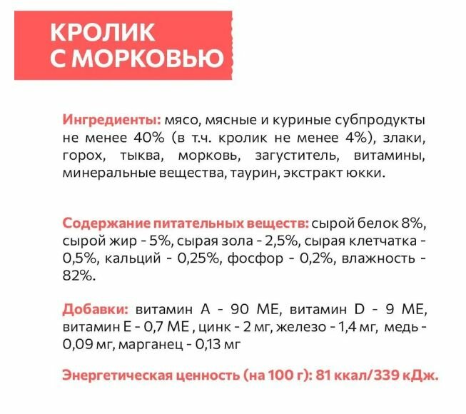Влажный корм для кошек Сириус Кролик с морковью 85г