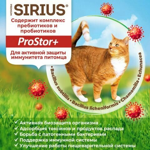 Сухой полнорационный корм Сириус для взрослых кошек, мясной рацион SIRIUS 400 г
