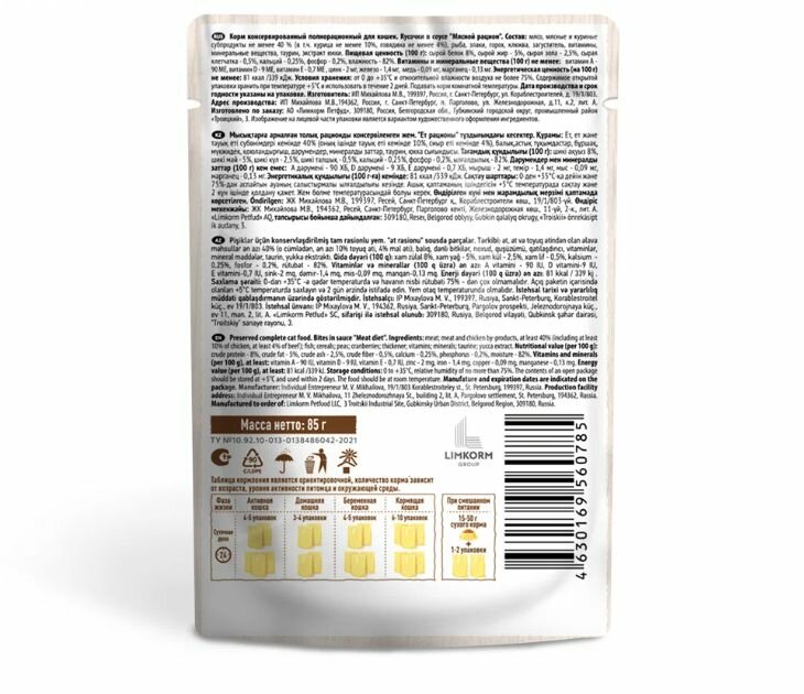 СохранитьКусочки в соусе SIRIUS мясной рацион для взрослых кошек 1 шт. х 85г. интересное: