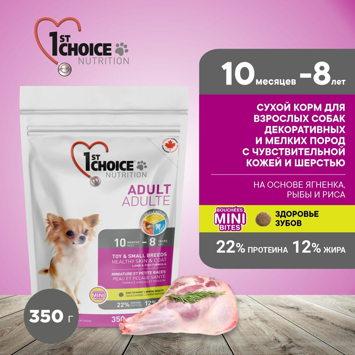 1ST CHOICE д/декоративных собак 350г, ягн.с рыб. и рисом х 3 шт.