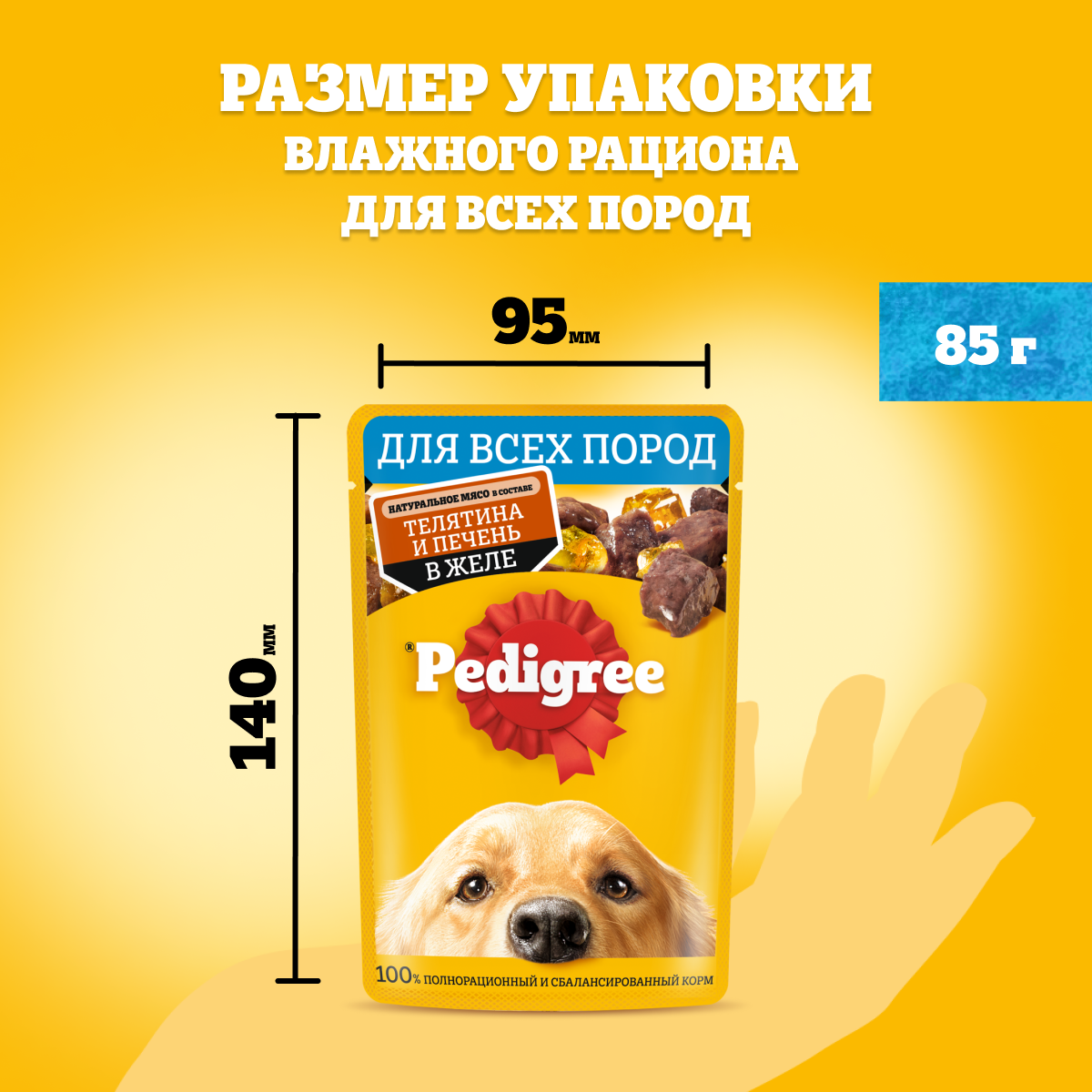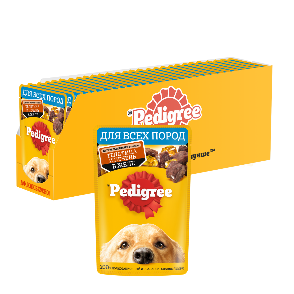 Купить Влажный корм PEDIGREE для взрослых собак всех пород, с телятиной и печенью в желе, 56 шт по 85 г